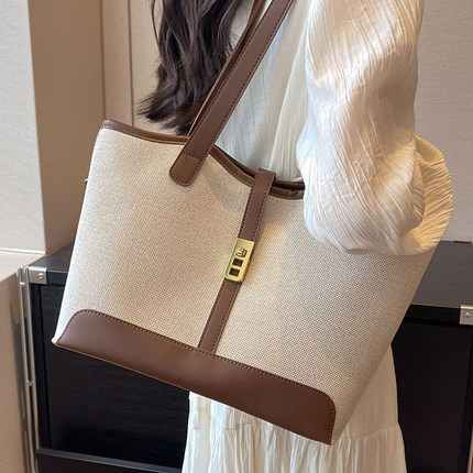 今年流行大容量帆布包2026新款上班通勤包百搭学生上课单肩托特包