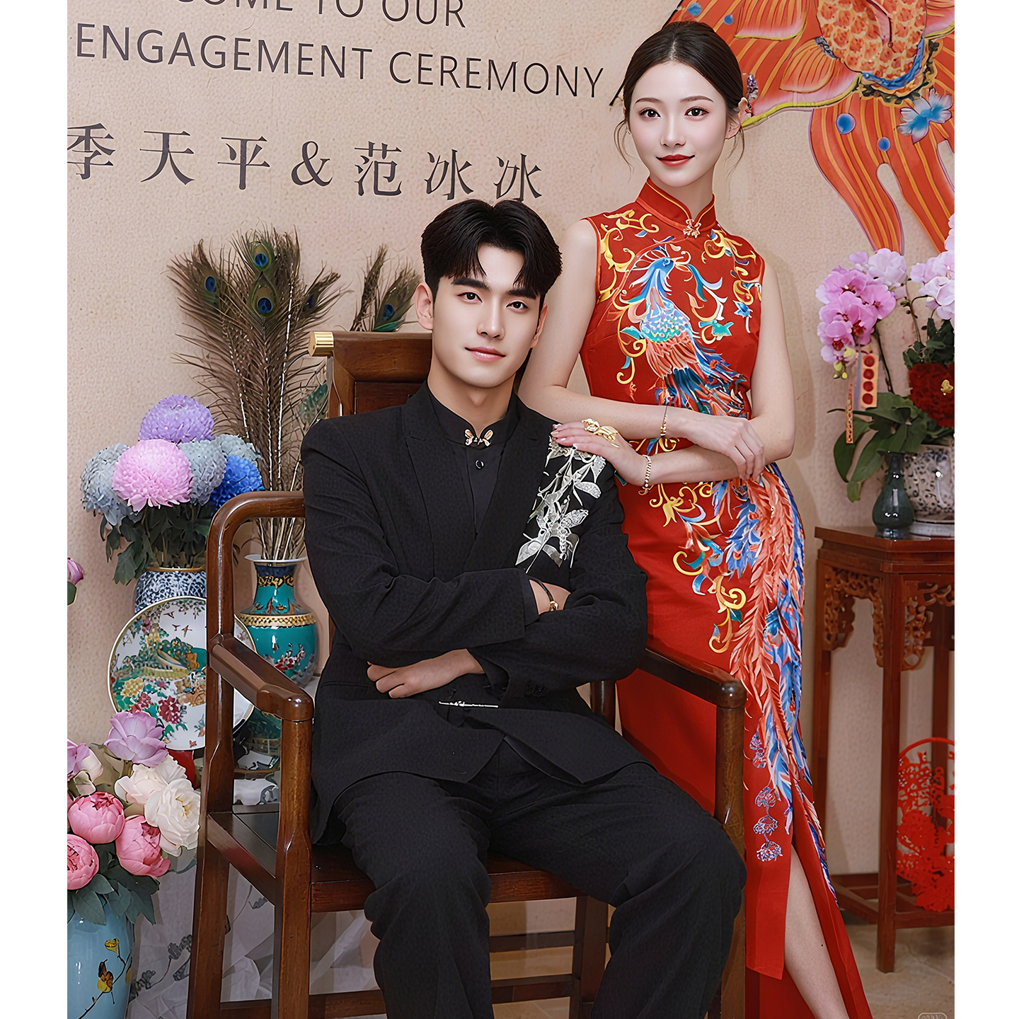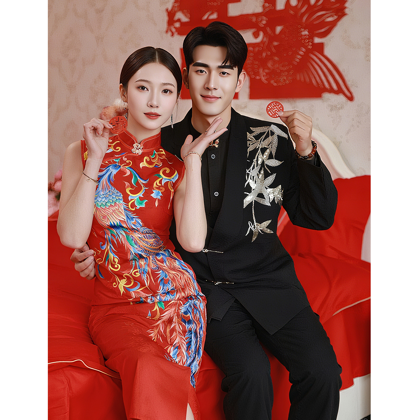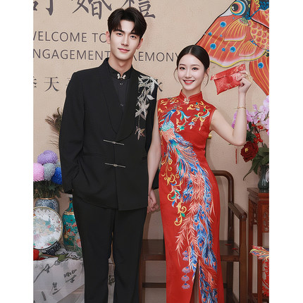 欢喜橙/新中式西服男士订婚衣服新郎结婚礼服男生中山装婚礼西装