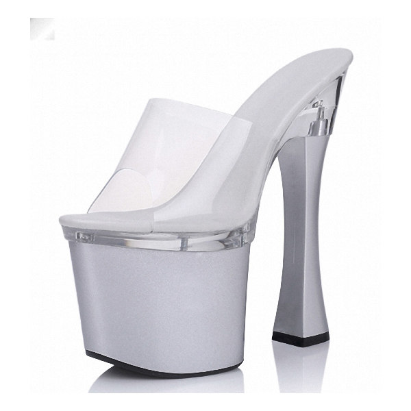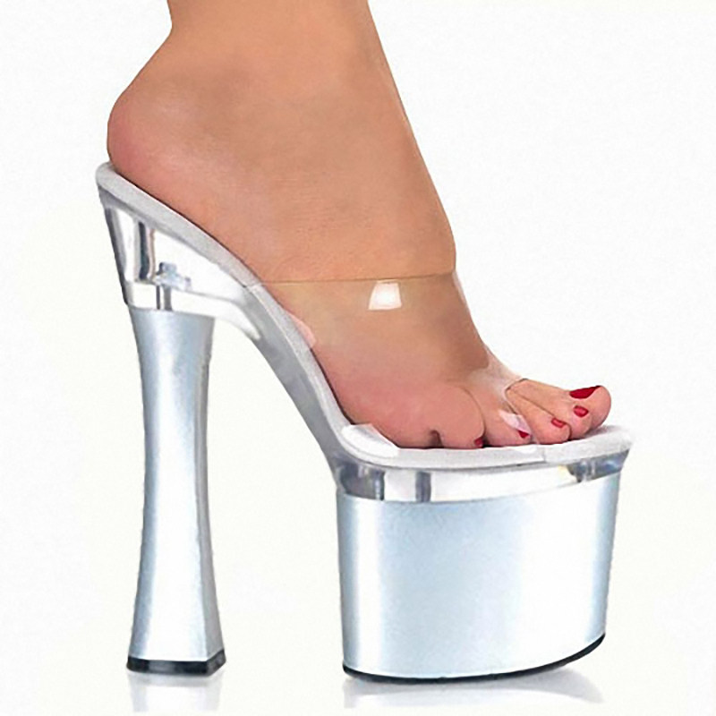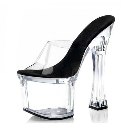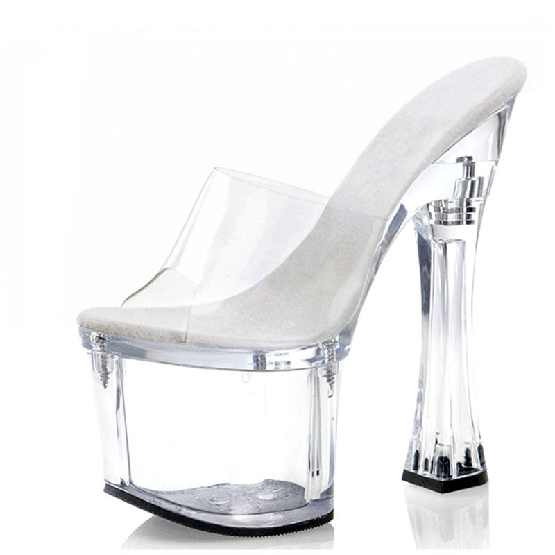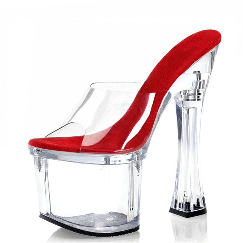 透明水晶防水台女高跟鞋18公分超高粗跟大码厚底凉拖鞋仙女恨天高