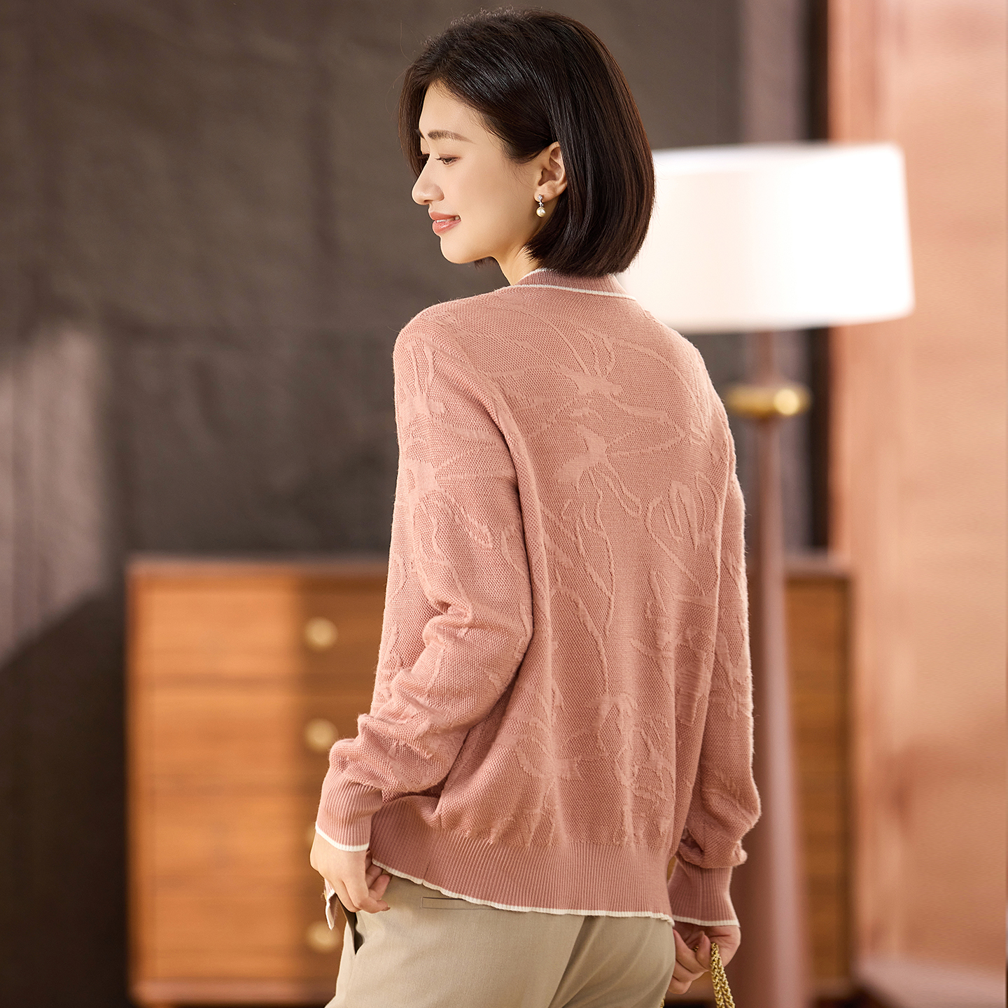喜卉妈妈秋装针织开衫两件套外套t恤内搭中老年女装上衣气质套装