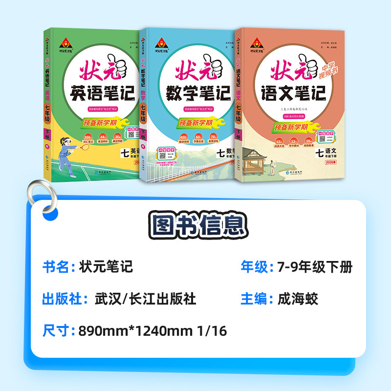 2026年春下册新版状元笔记初中教辅七年级八年级九年级下册语文数学英语教辅同步预复习课程全解人教版教材全解课堂笔记