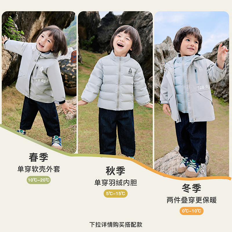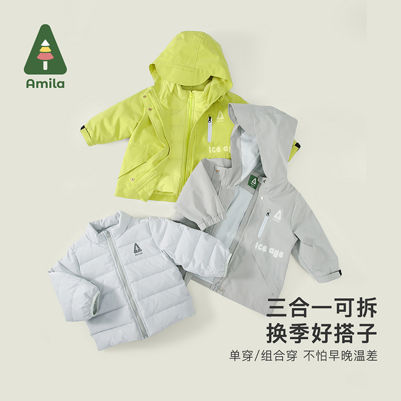 Amila童装2025春秋新款男女童宝宝羽绒内胆三合一冲锋衣两件套