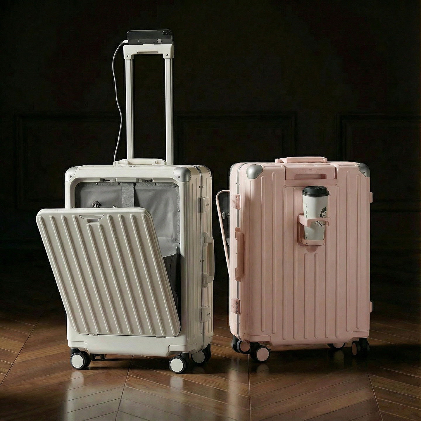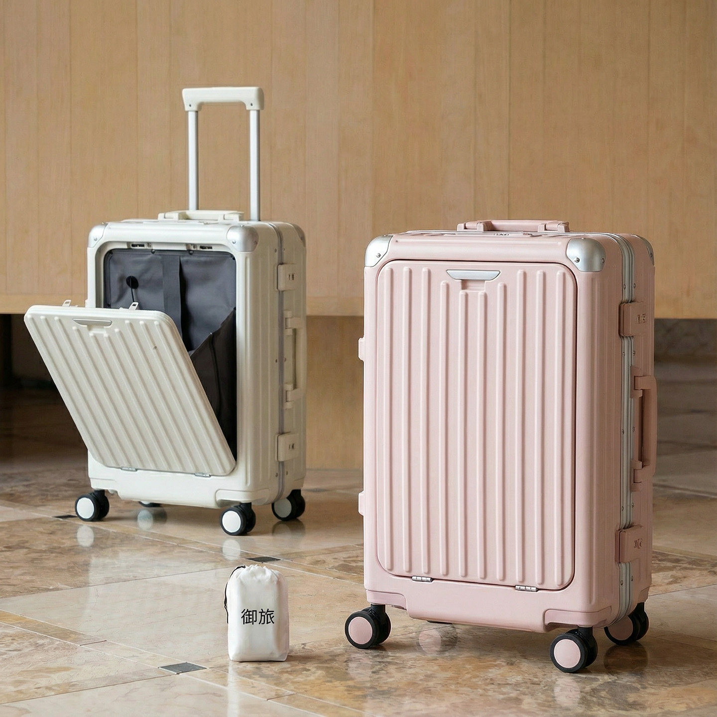 御旅前开盖行李箱女多功能铝框拉杆箱万向轮20 24 26寸旅行箱男潮