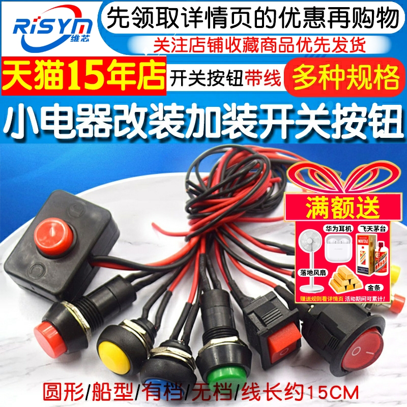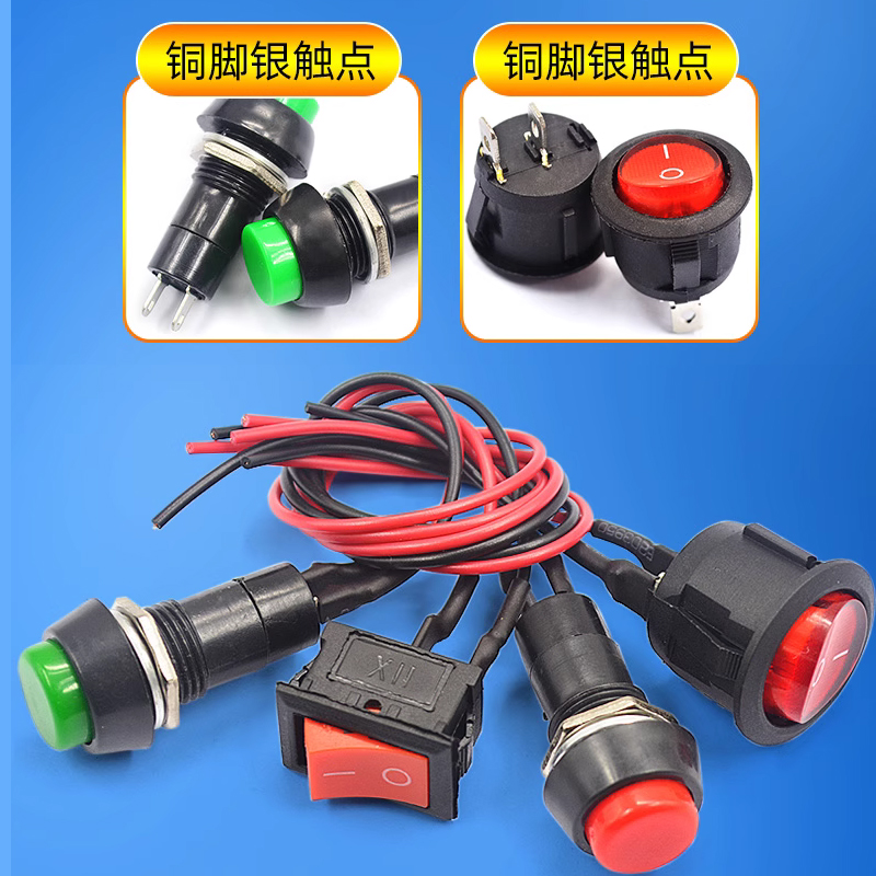 开关按钮小开关小型按键汽车自锁无锁自复位迷你圆形微型船型带线