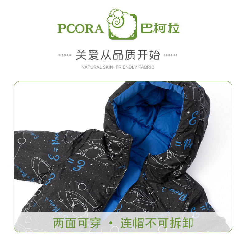 巴柯拉专柜同款儿童中大童羽绒服男童外套冬装防寒服白鸭绒双面穿