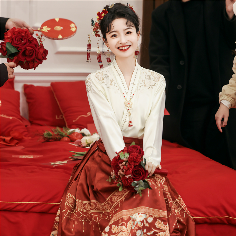 红色马面裙套装2024新款小个子敬酒服新娘订婚礼服回门新中式婚服