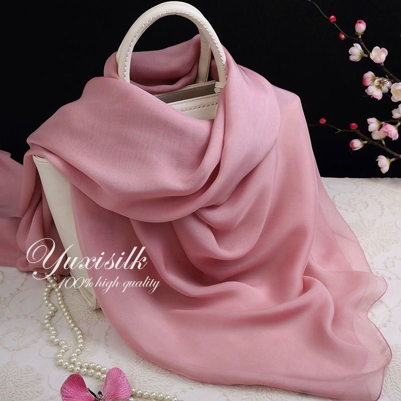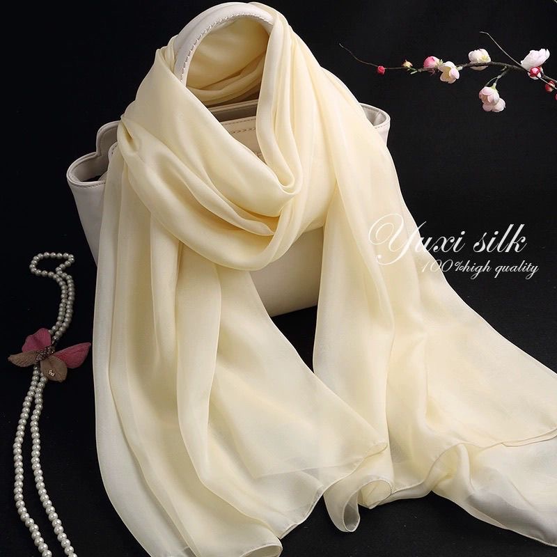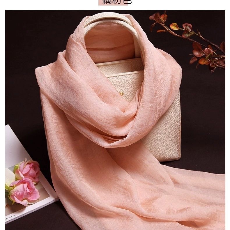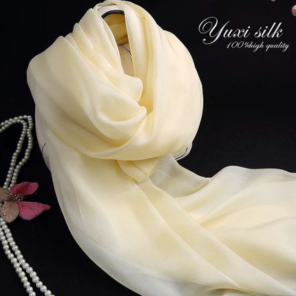 米黄色纯色桑蚕丝长款真丝丝巾披肩女纱巾春秋冬夏季丝绸围巾丝皱