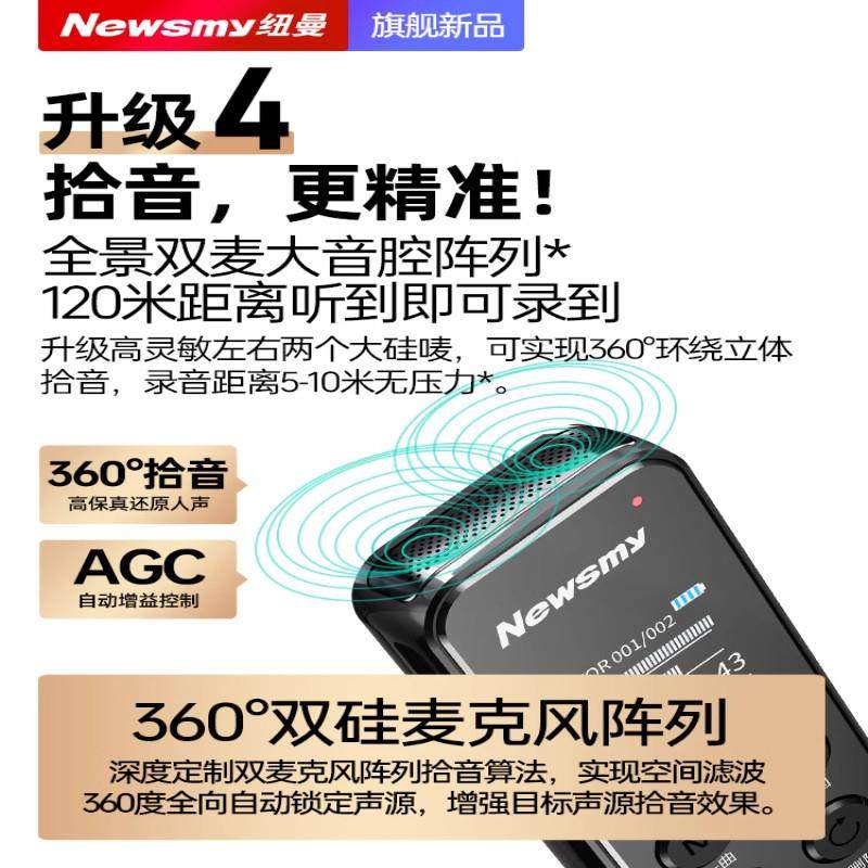 纽曼专业录音笔高清降噪转文字设备学生律师随身录音神器超长待机