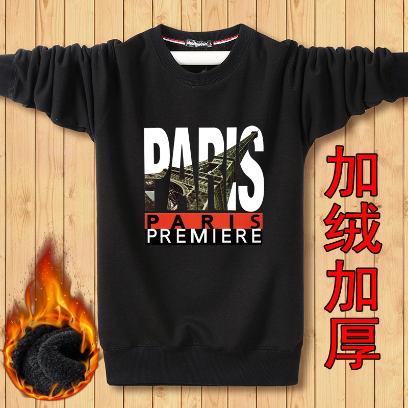 无帽卫衣男生冬季带绒宽松韩版潮流外套加绒加厚套头秋冬款上衣男