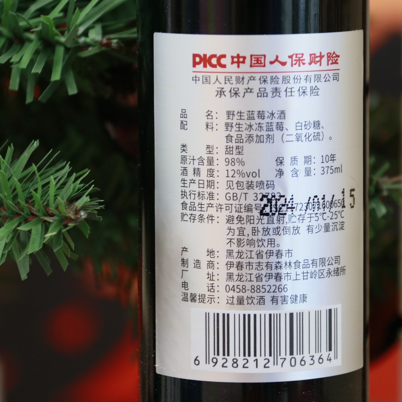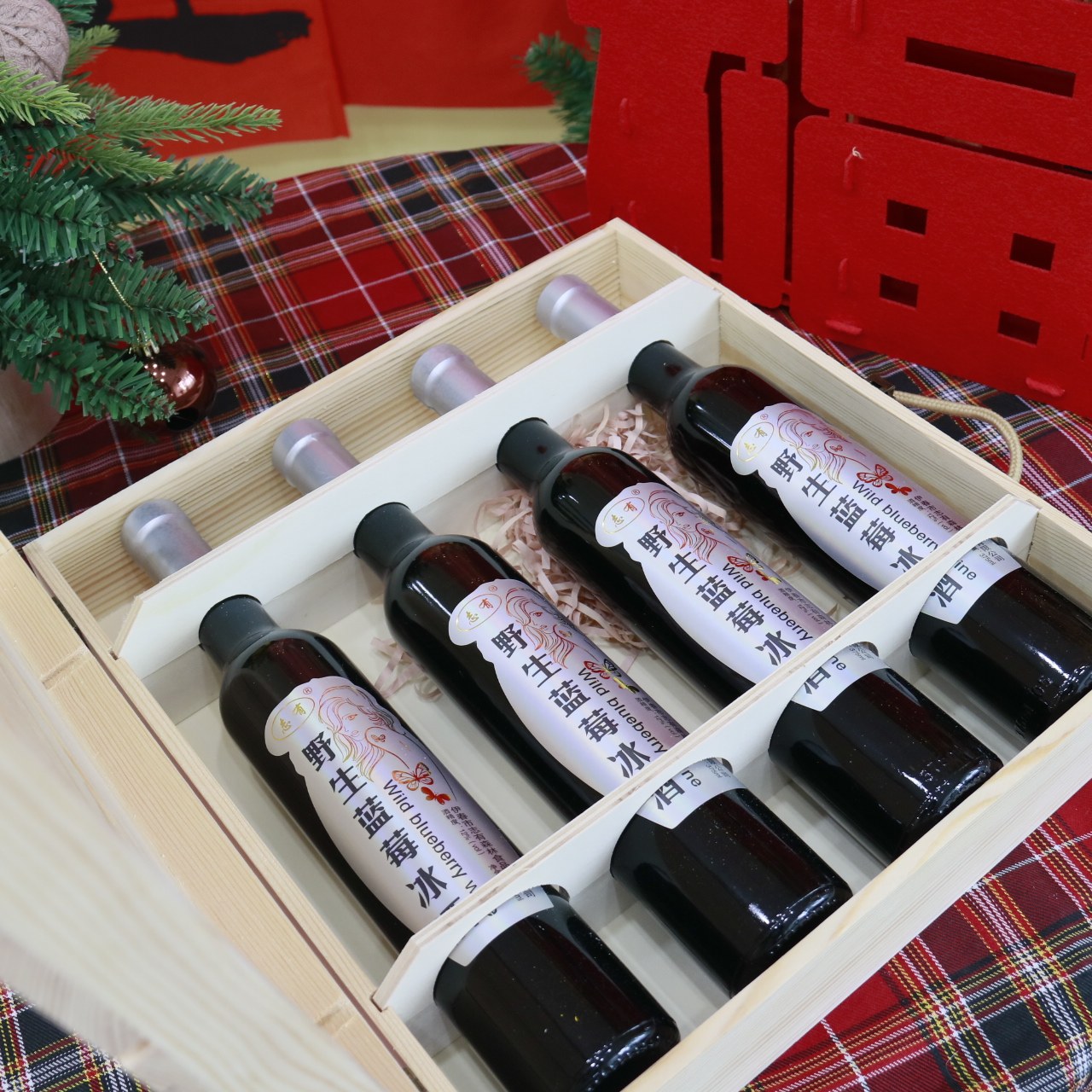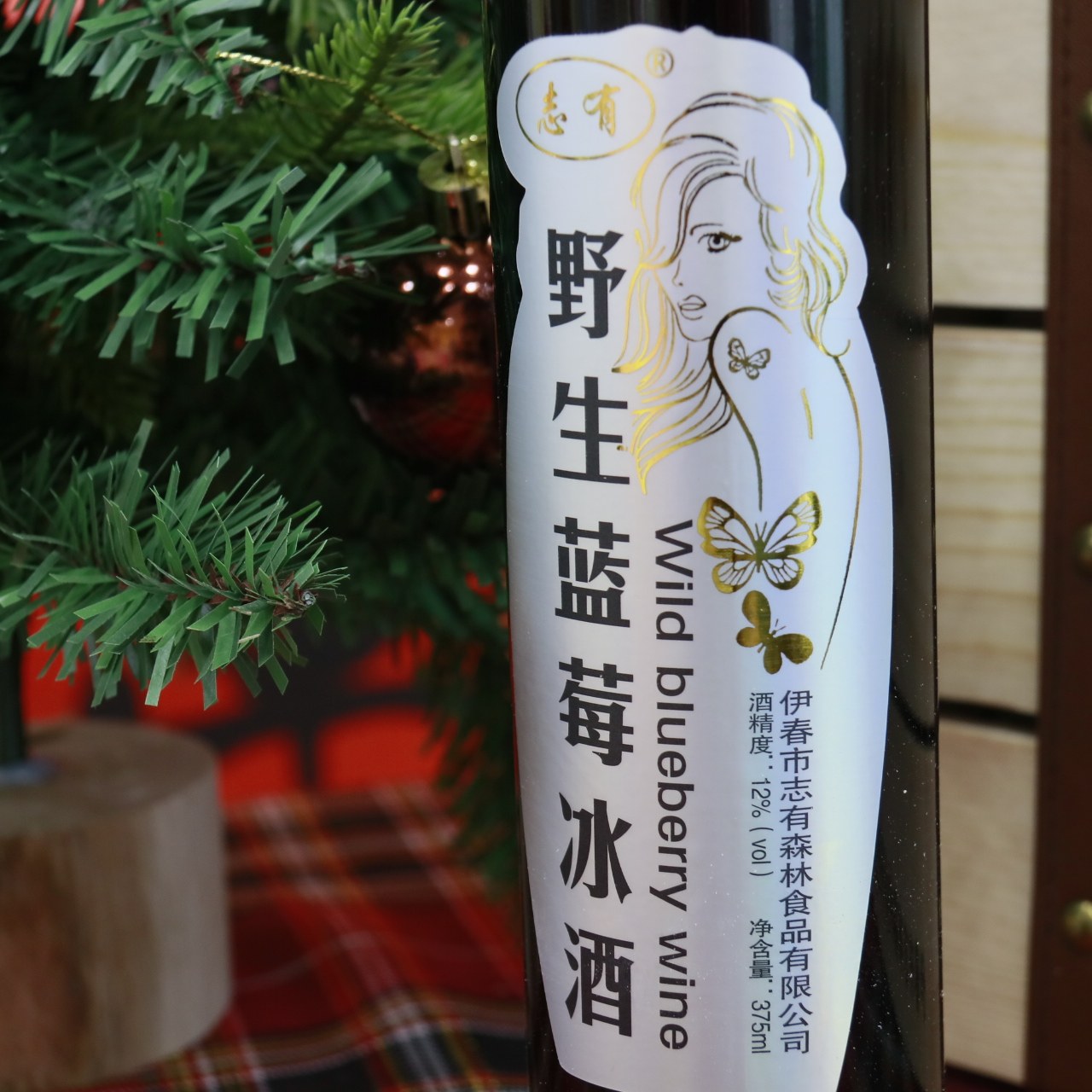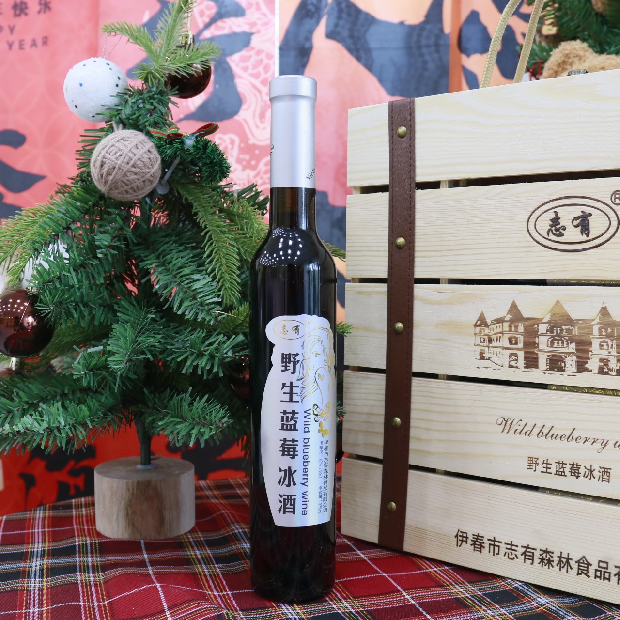 东北特产伊春志有野生蓝莓冰酒375ML4瓶木盒装包邮