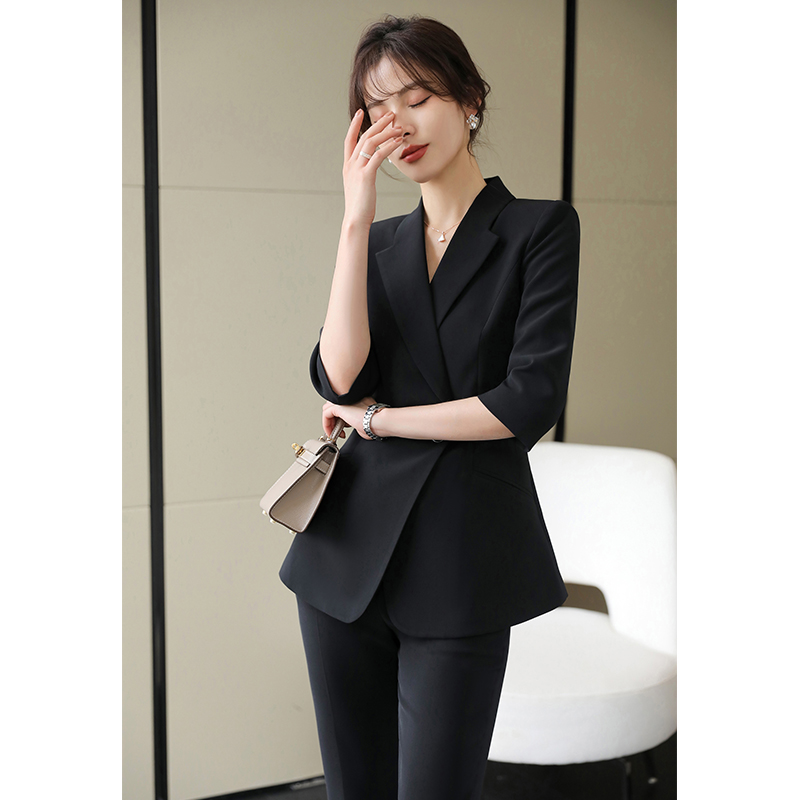 黑色职业装女装总裁西装套装英伦气质西服套装面试春秋正装工作服