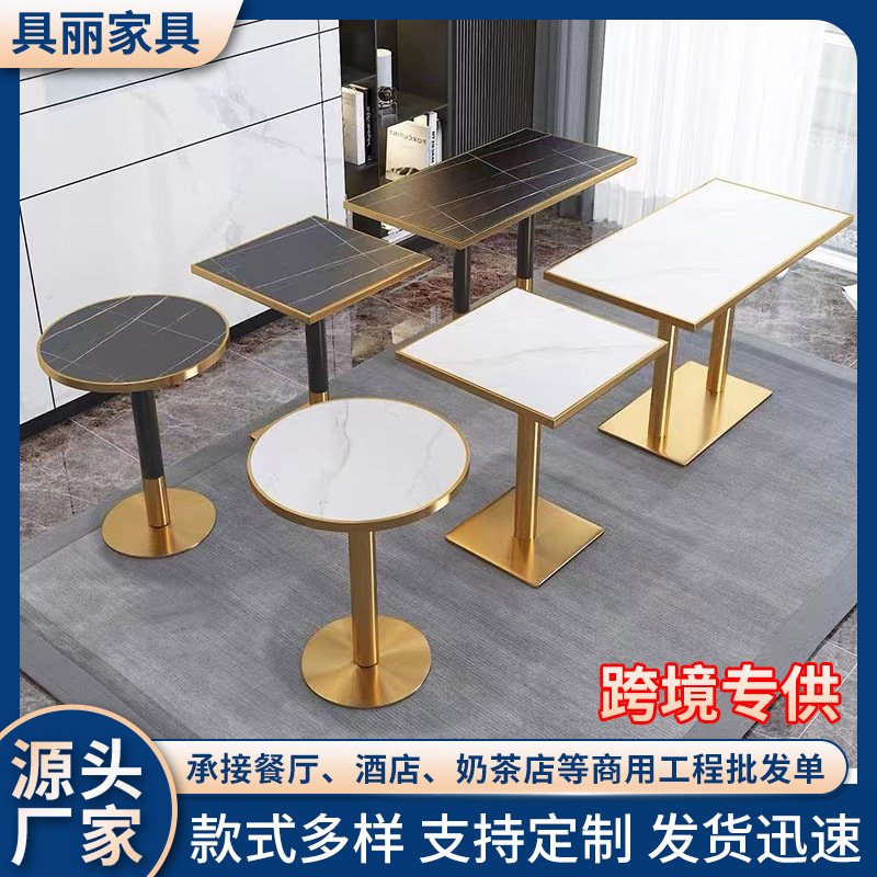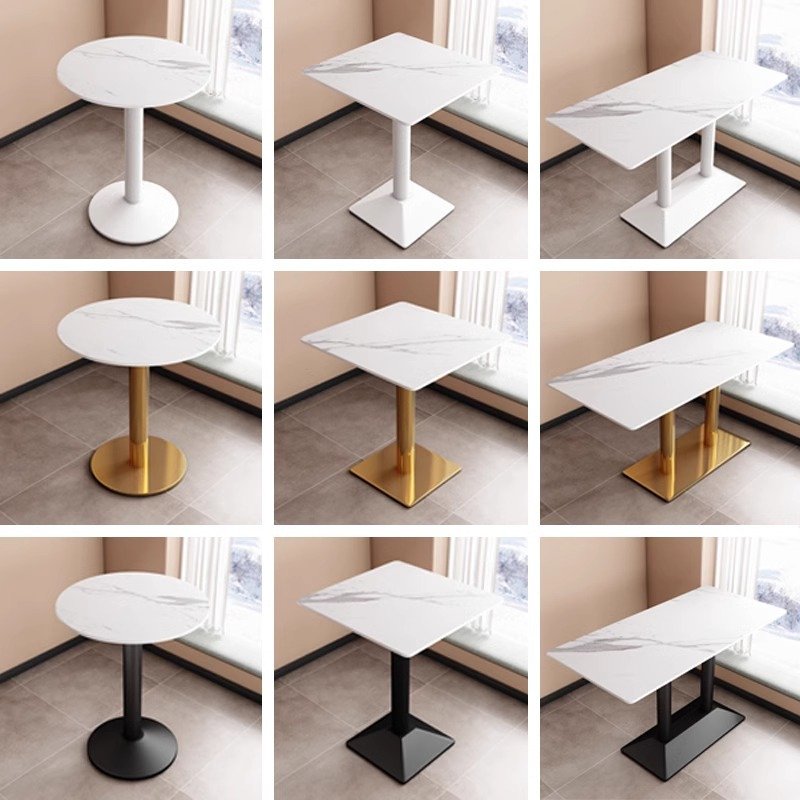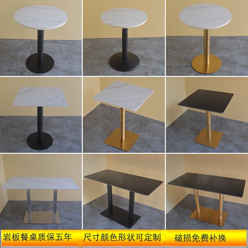 食堂快餐厅岩板桌子商用服务区甜品奶茶饭店长方小圆洽谈桌椅组合