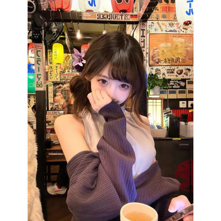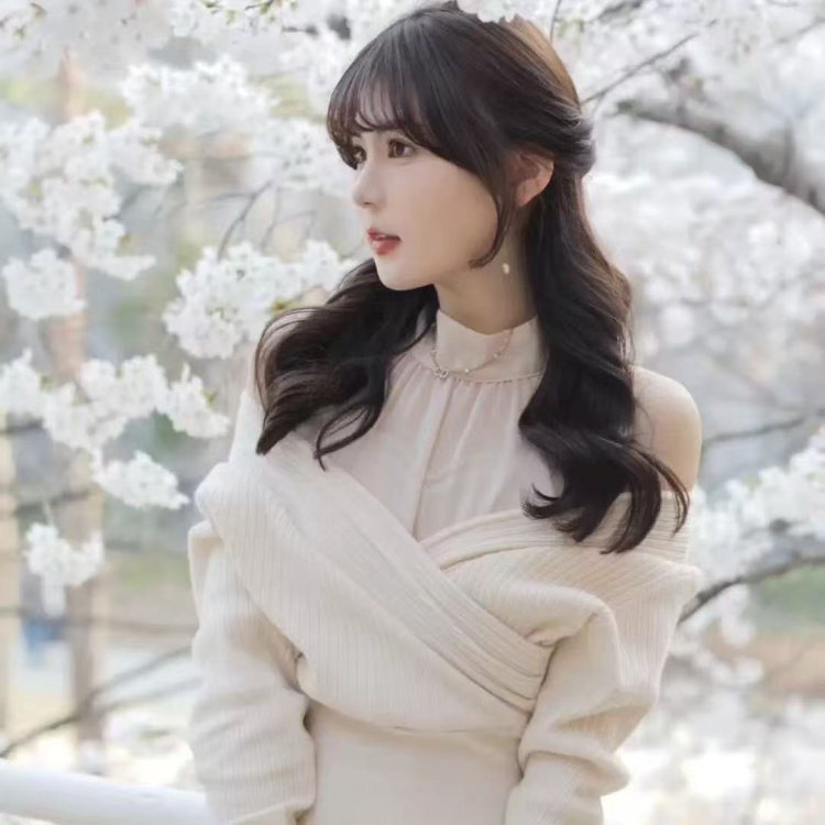 哚琦琦 日系纯欲风甜美薄纱拼接露肩鱼尾裙毛衣针织连衣裙