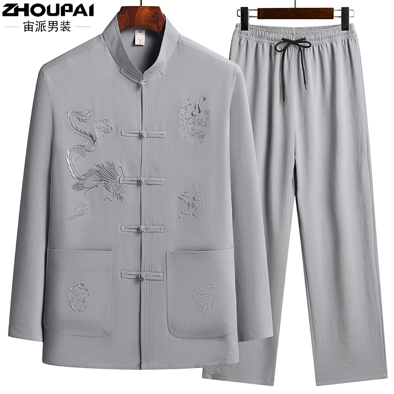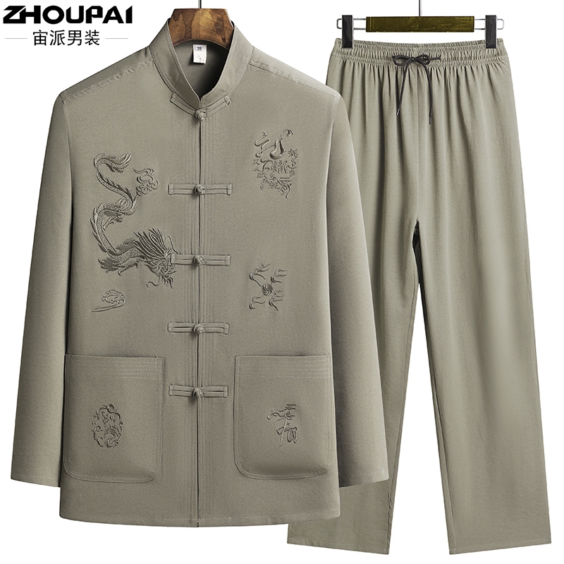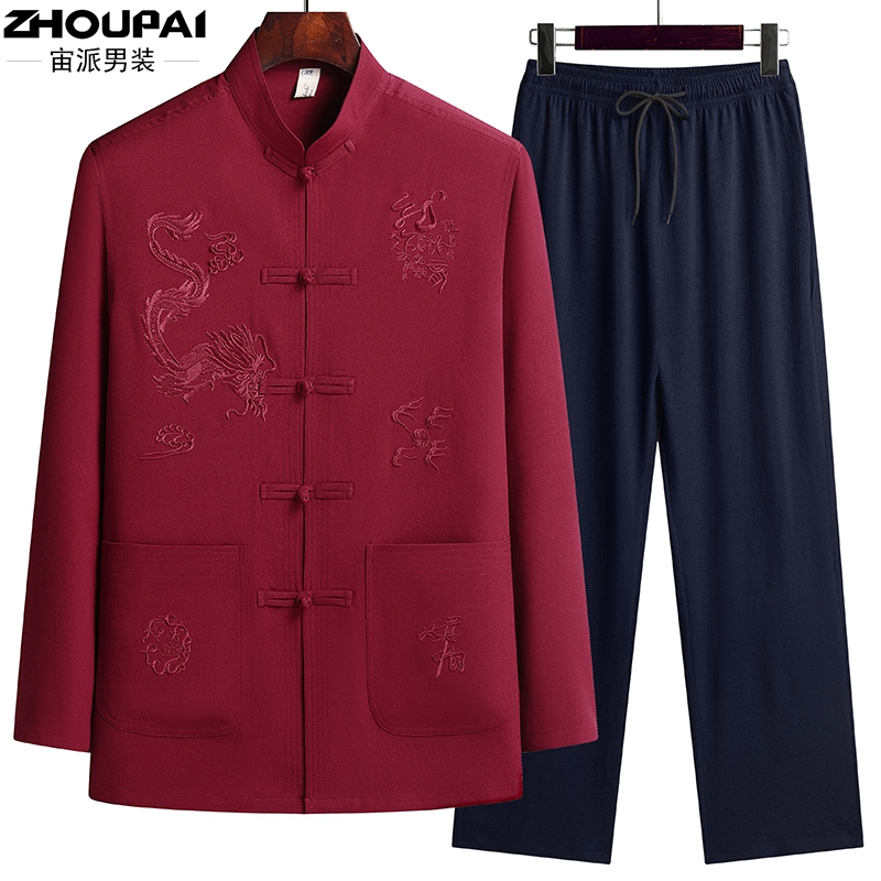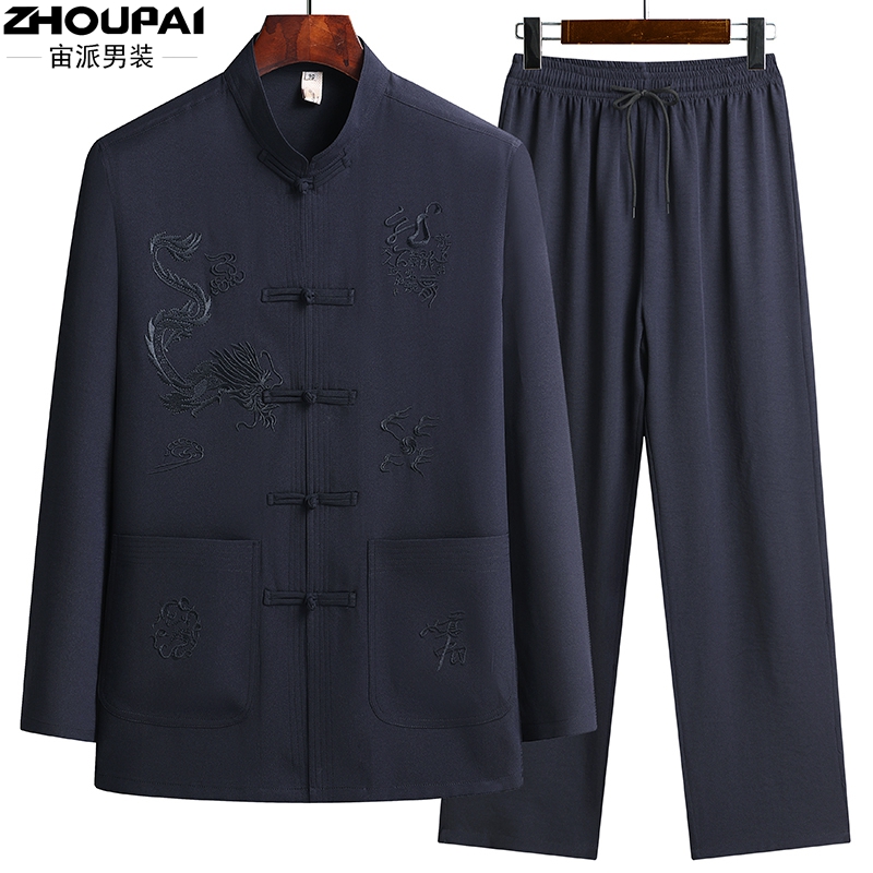 唐装男中老年人爸爸秋装长袖套装中国风春秋爷爷老人秋季父亲衣服