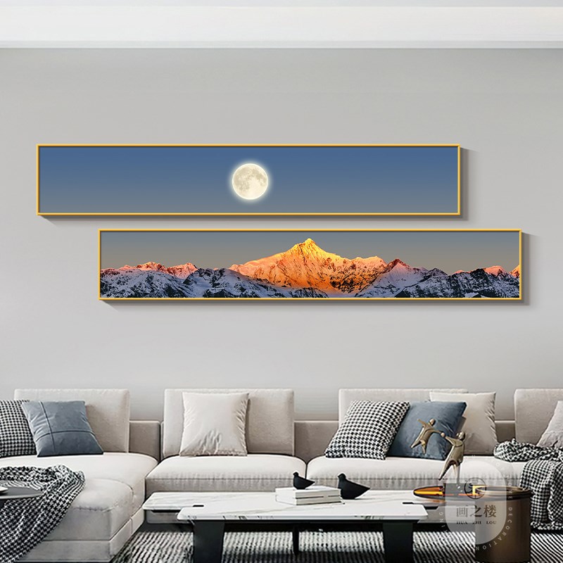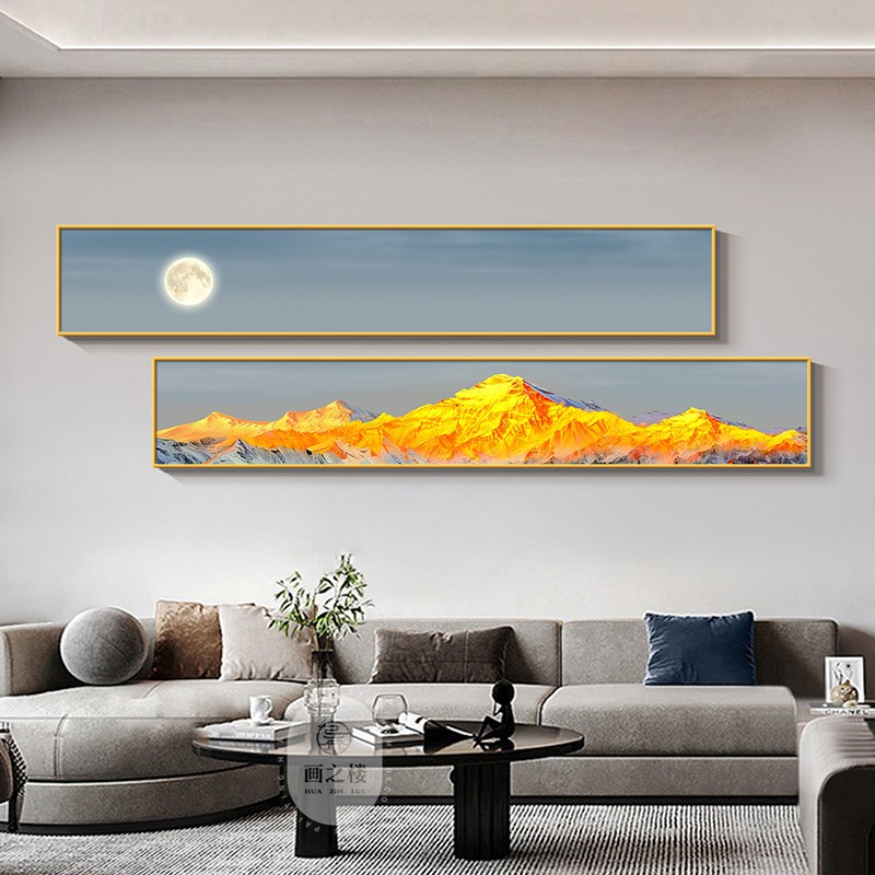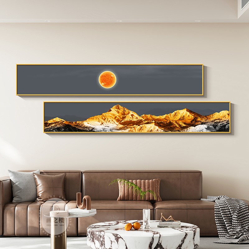 背靠金山客厅装饰画现代简约大白墙沙发背景挂画横版窄长条组合画