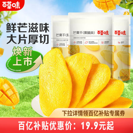 百草味芒果干100gx3水果干厚切果脯蜜饯食品爆款零食休闲小吃果干
