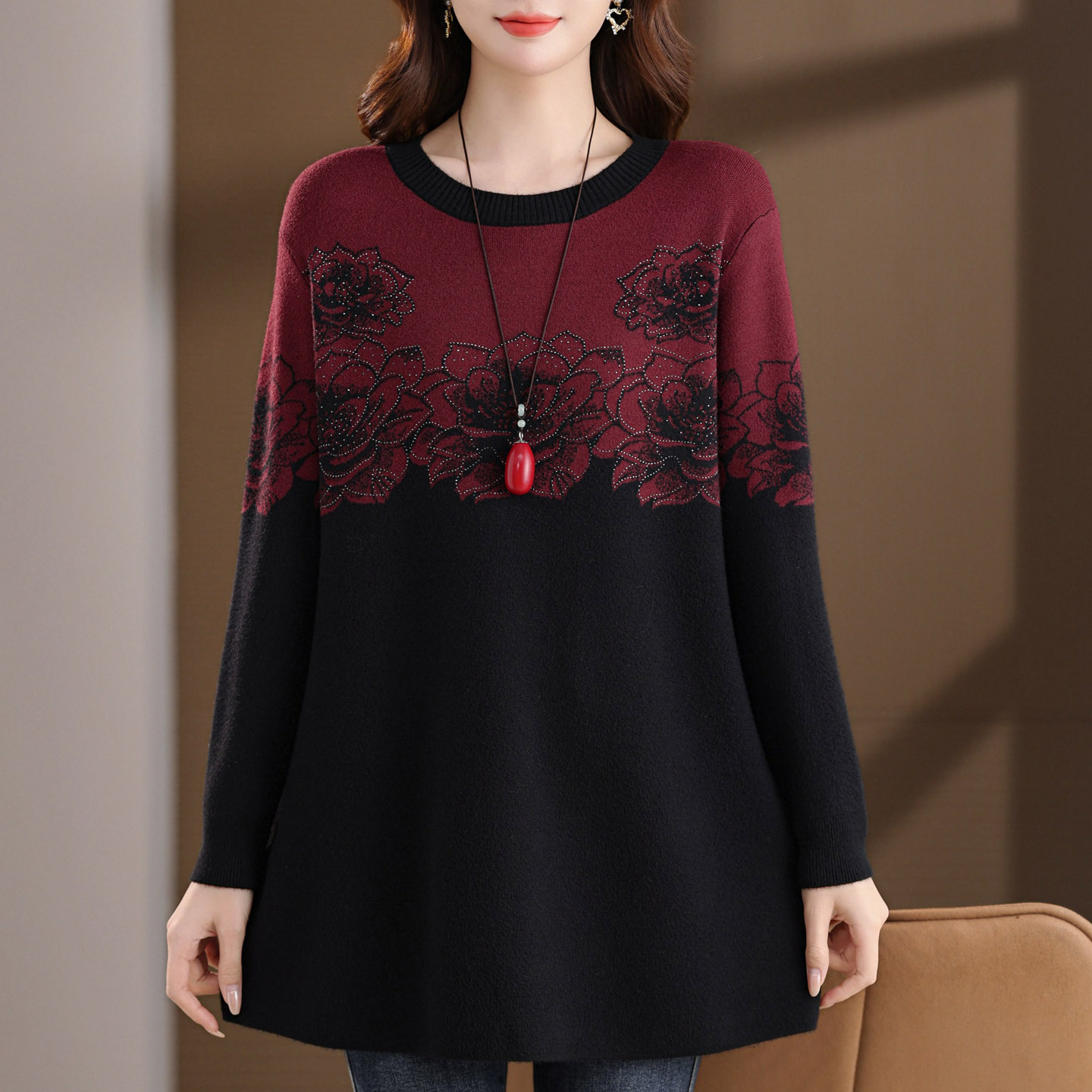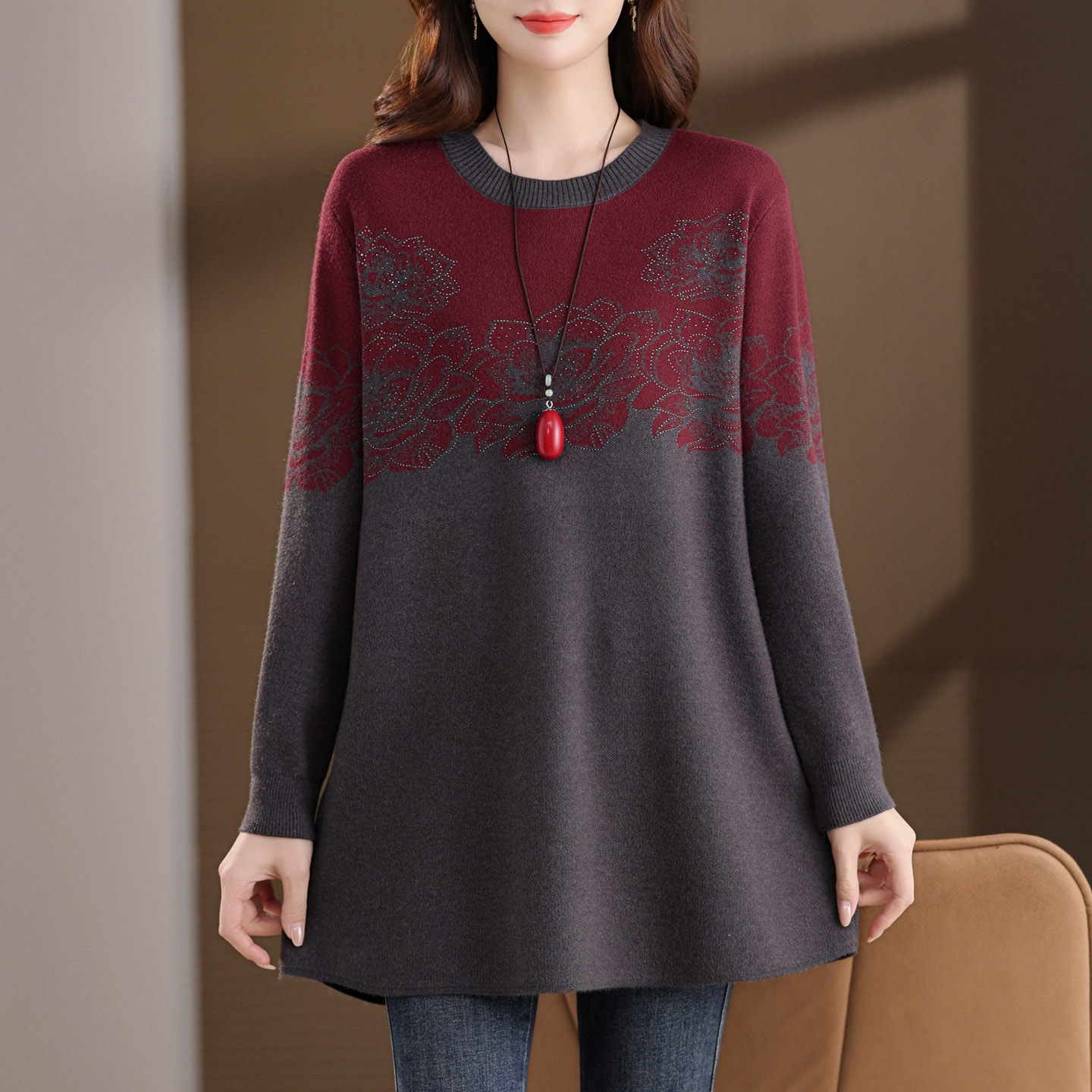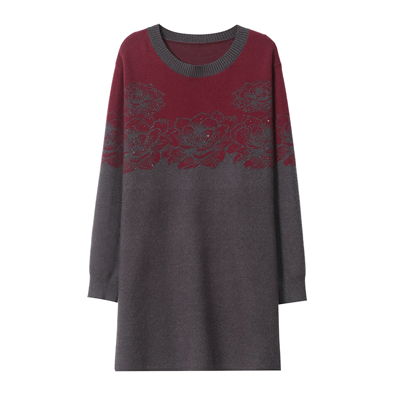 洋气高贵中老年妈妈秋冬中长款羊绒衫女加肥加大码宽松遮肚毛衣裙