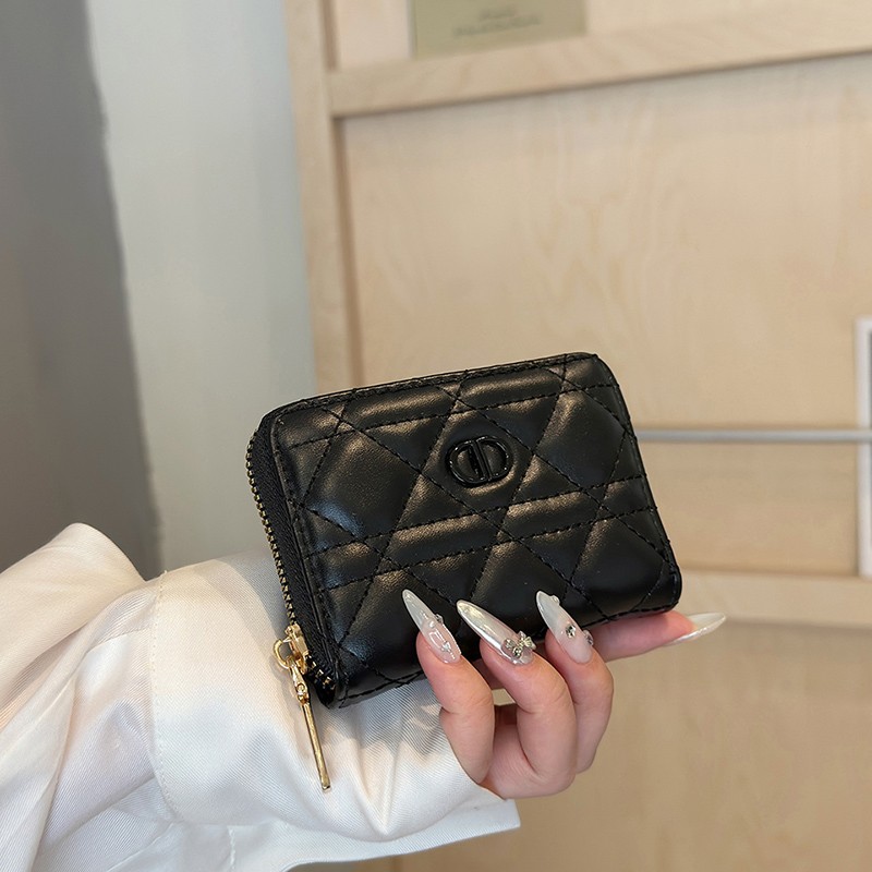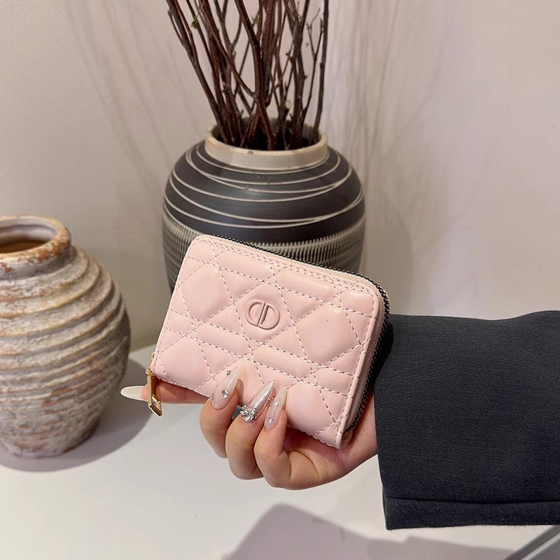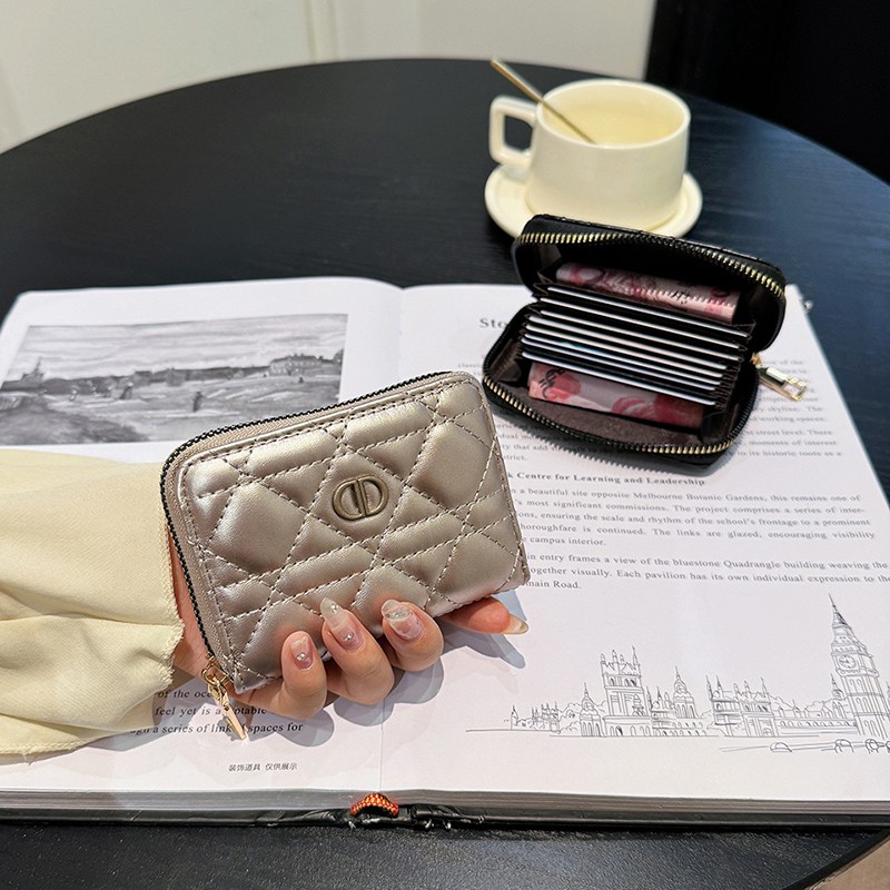 防消磁菱格卡包女小众设计精致高档多卡位小巧风琴拉链卡套证件包