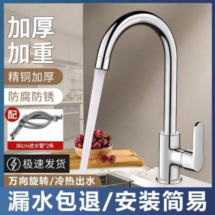 精铜厨房水龙头冷热洗菜盆不锈钢水槽防溅洗手池洗碗单冷旋转家用
