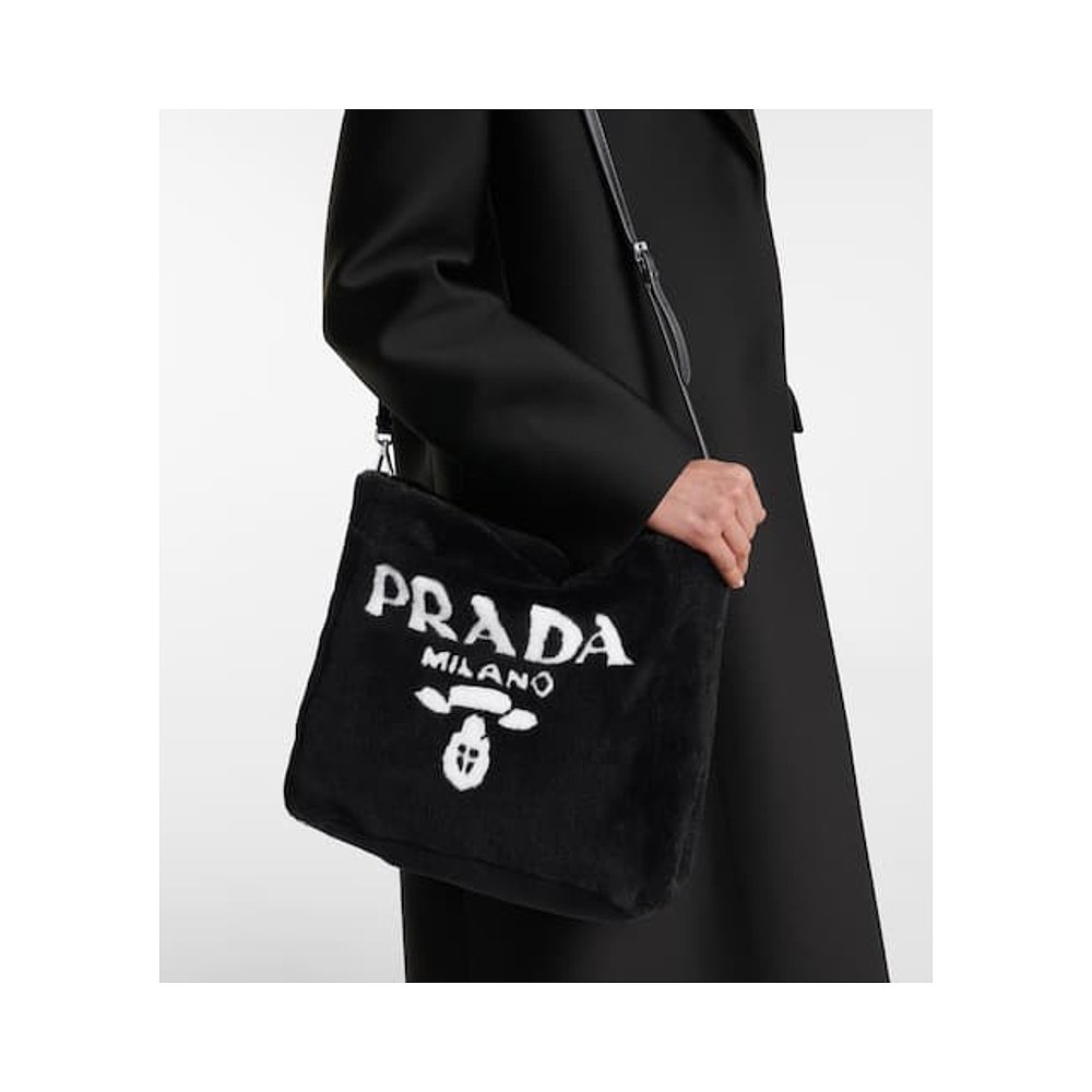 1h可退 香港直邮潮奢 Prada 普拉达 女士 中号毛羊皮手提包单肩包