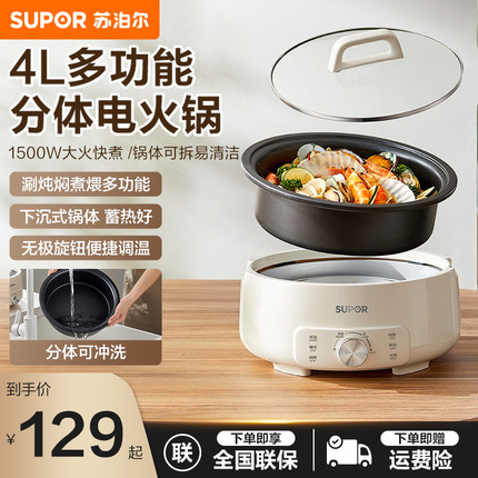 苏泊尔电火锅电煮锅家用多功能宿舍电锅分体式电热锅炒锅H28YK857