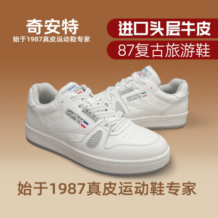 奇安特【经典87】头层牛皮旅游鞋男鞋轻板鞋透气小白鞋运动休闲鞋