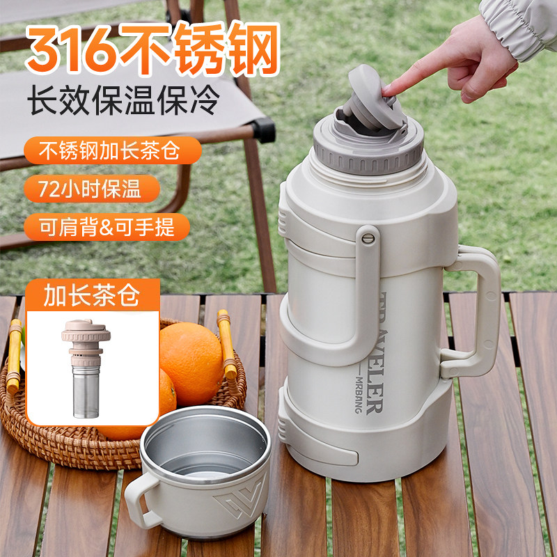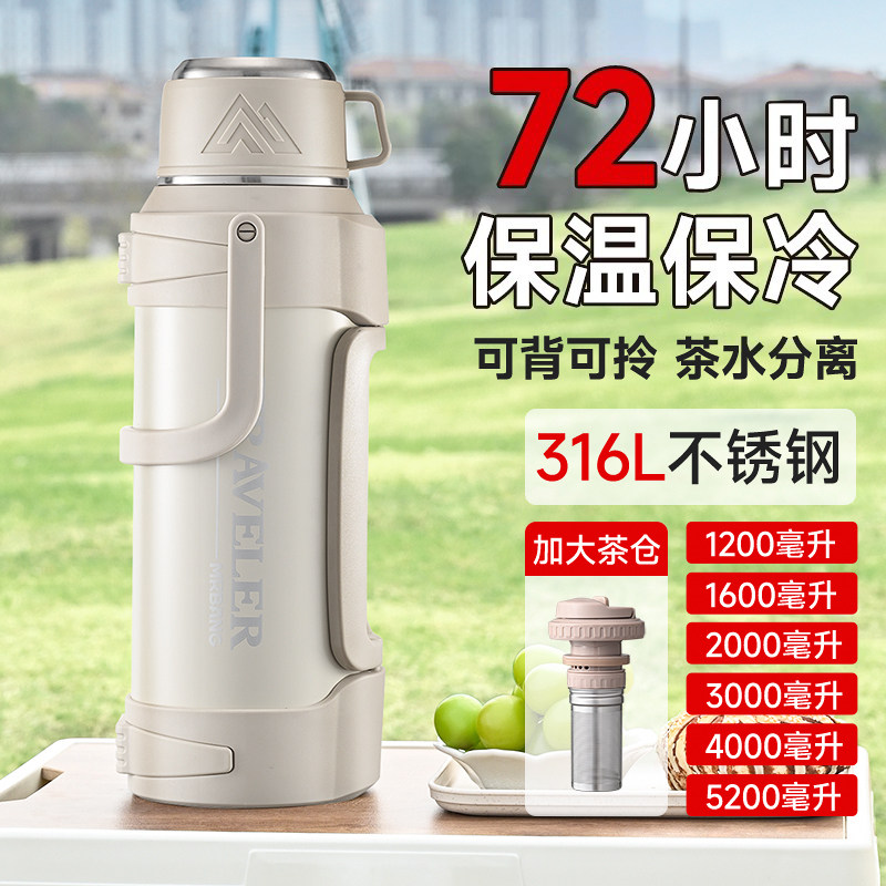 316不锈钢保温壶户外大容量保温杯男大号车载便携热水壶家用水瓶