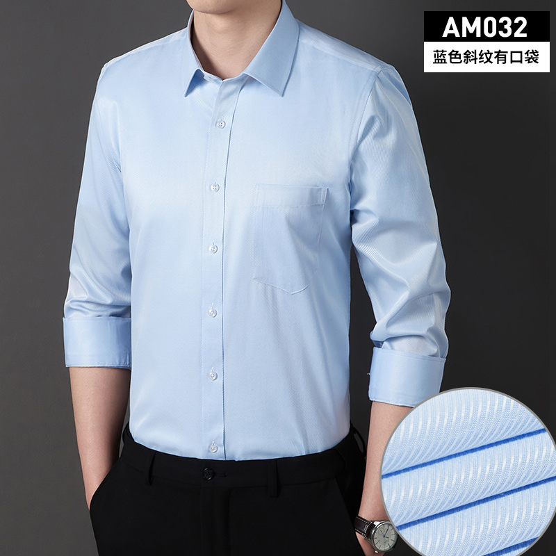 2024新款春季休闲衬衫男长袖商务职业绅士蓝色衬衣男打底衫有大码