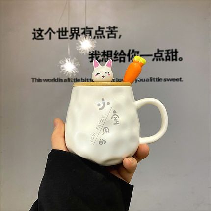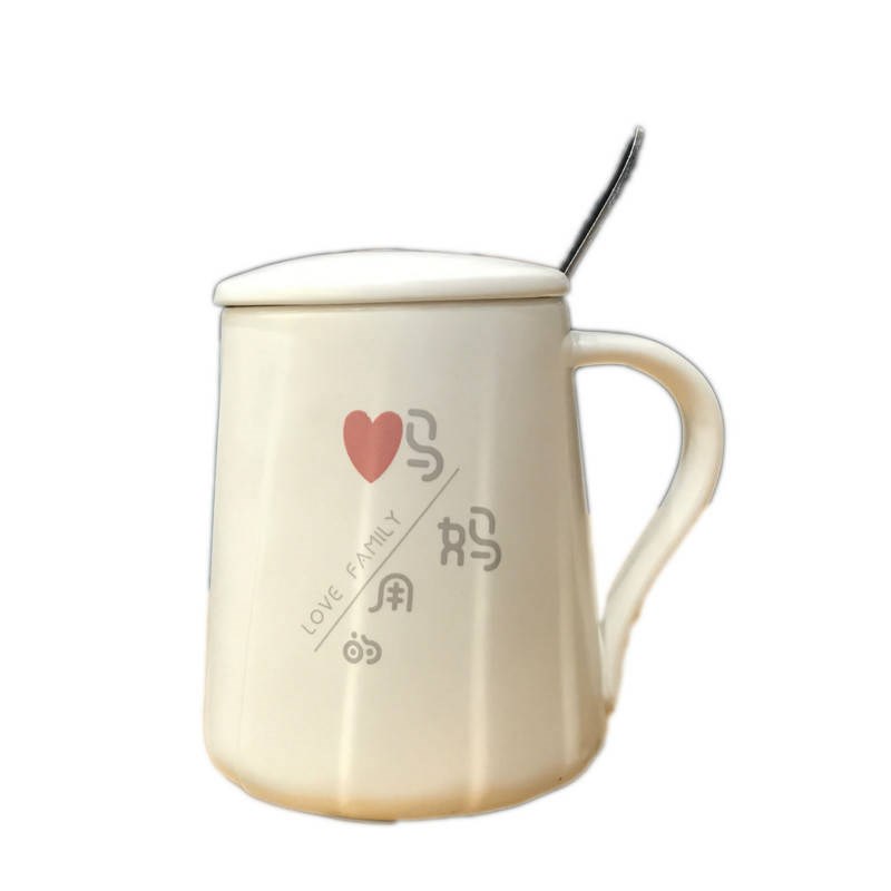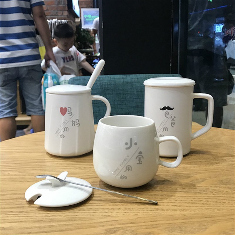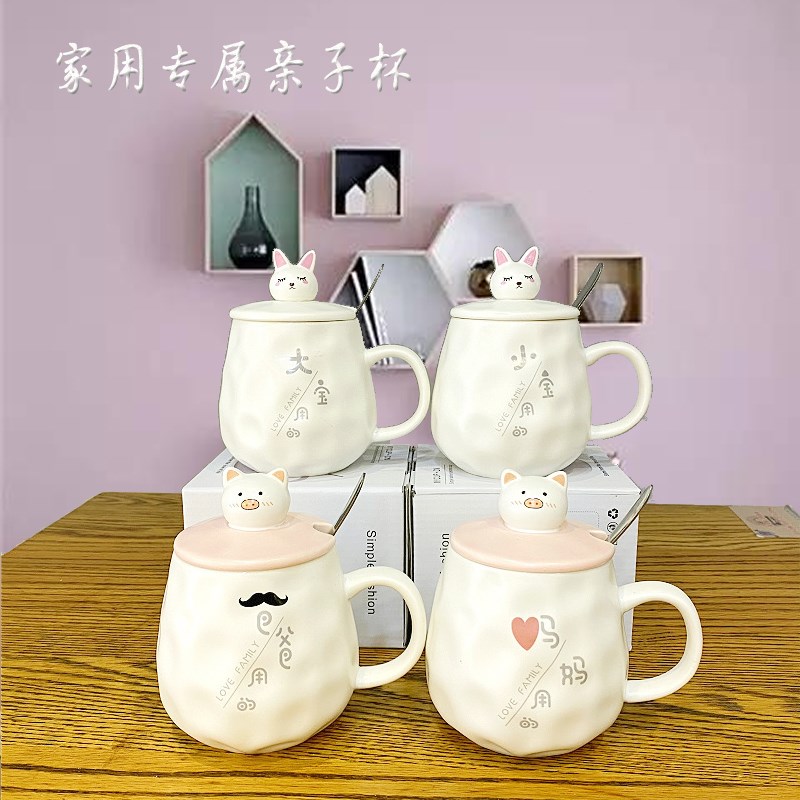 亲子杯子一家四口三口喝水杯一家人水杯套装中式家用陶瓷杯带盖勺