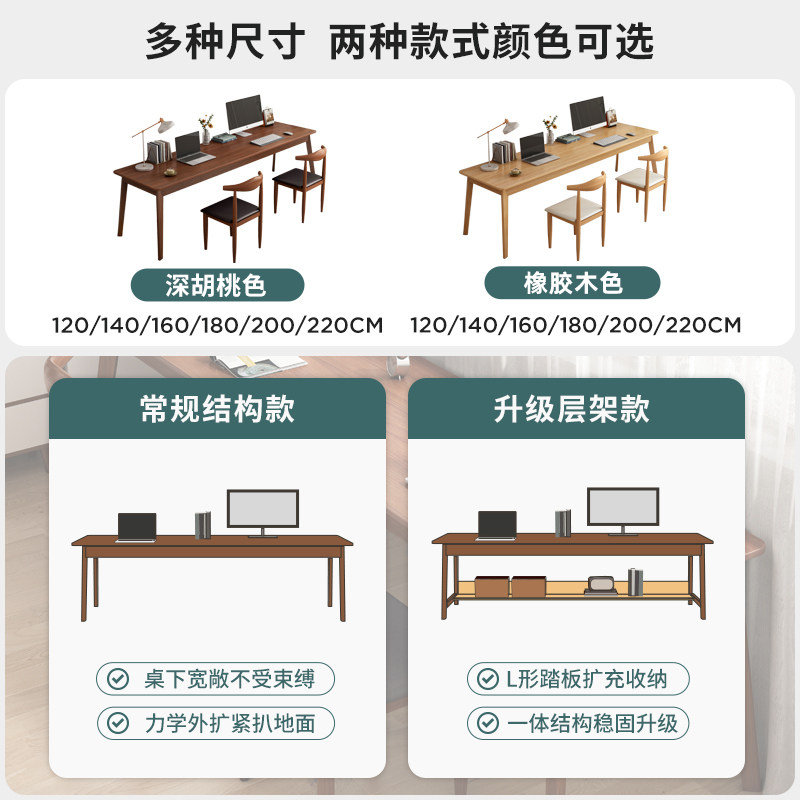 长条桌子工作台双人书桌家用学生习写字桌实木腿靠墙窗卧室电脑桌