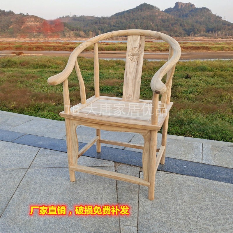 新中式实木复古白坯圈椅官帽椅餐椅茶桌椅办公椅休闲太师椅靠背椅