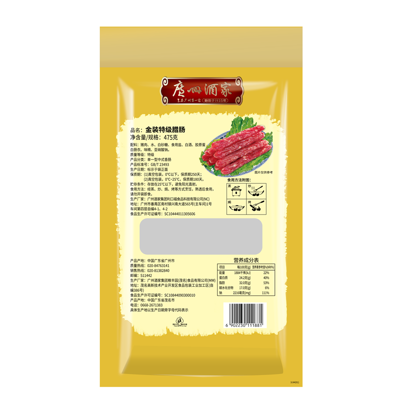 广州酒家金装特级二八腊肠475g
