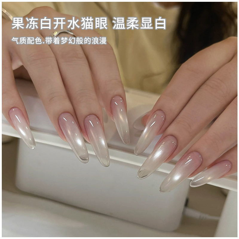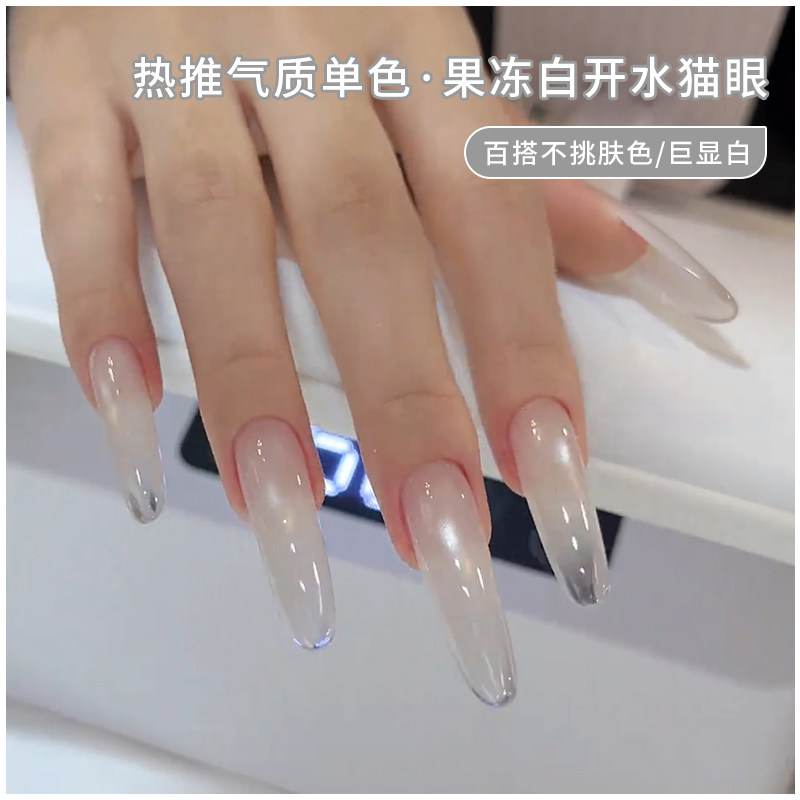 网红冰透果冻白开水猫眼指甲油胶2026年新款爆闪瓷白玻璃珠猫眼胶
