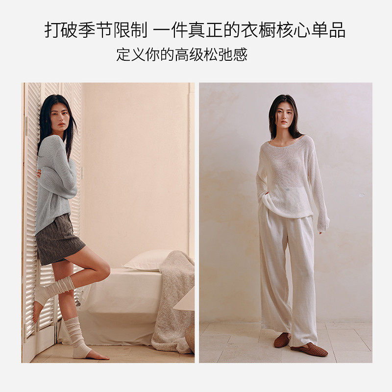 YINER LIFE【软云纱】慵懒风露肩一字领打底衫显瘦羊毛针织衫女士