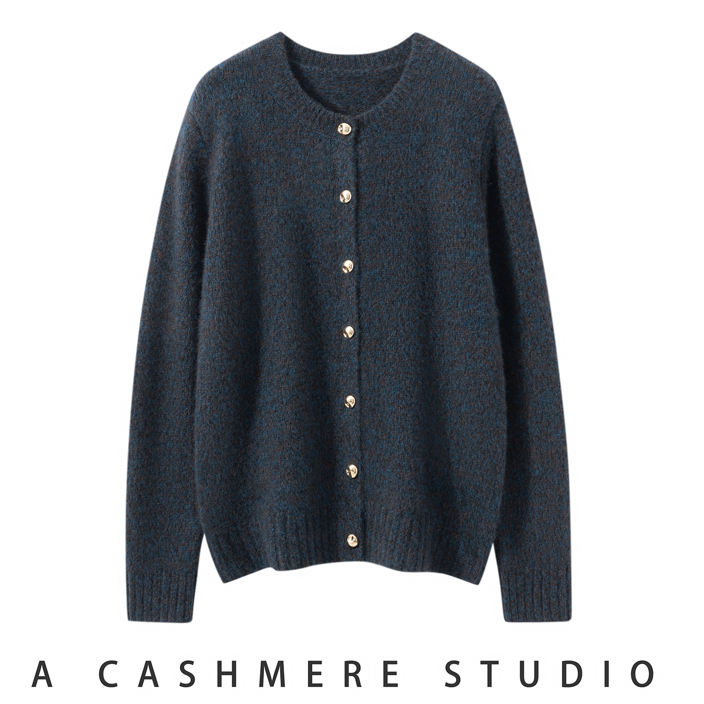 高级穿搭花纱蚕丝羊绒开衫女轻奢圆领洋气山羊绒衫女软糯毛衣针织