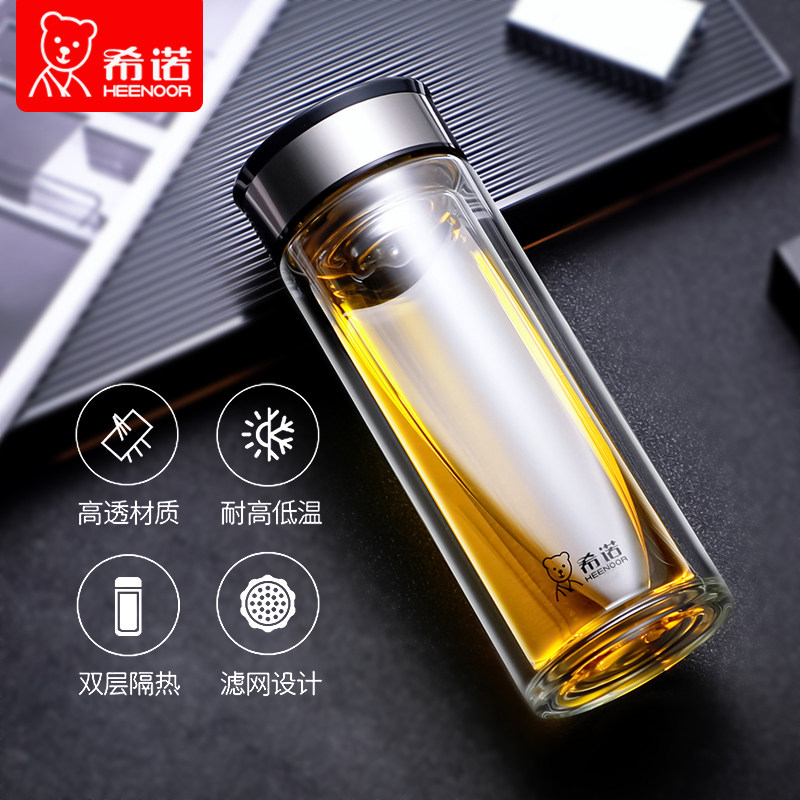 正品希诺双层玻璃杯耐热泡茶杯男女喝水杯子便携旅行车载男士