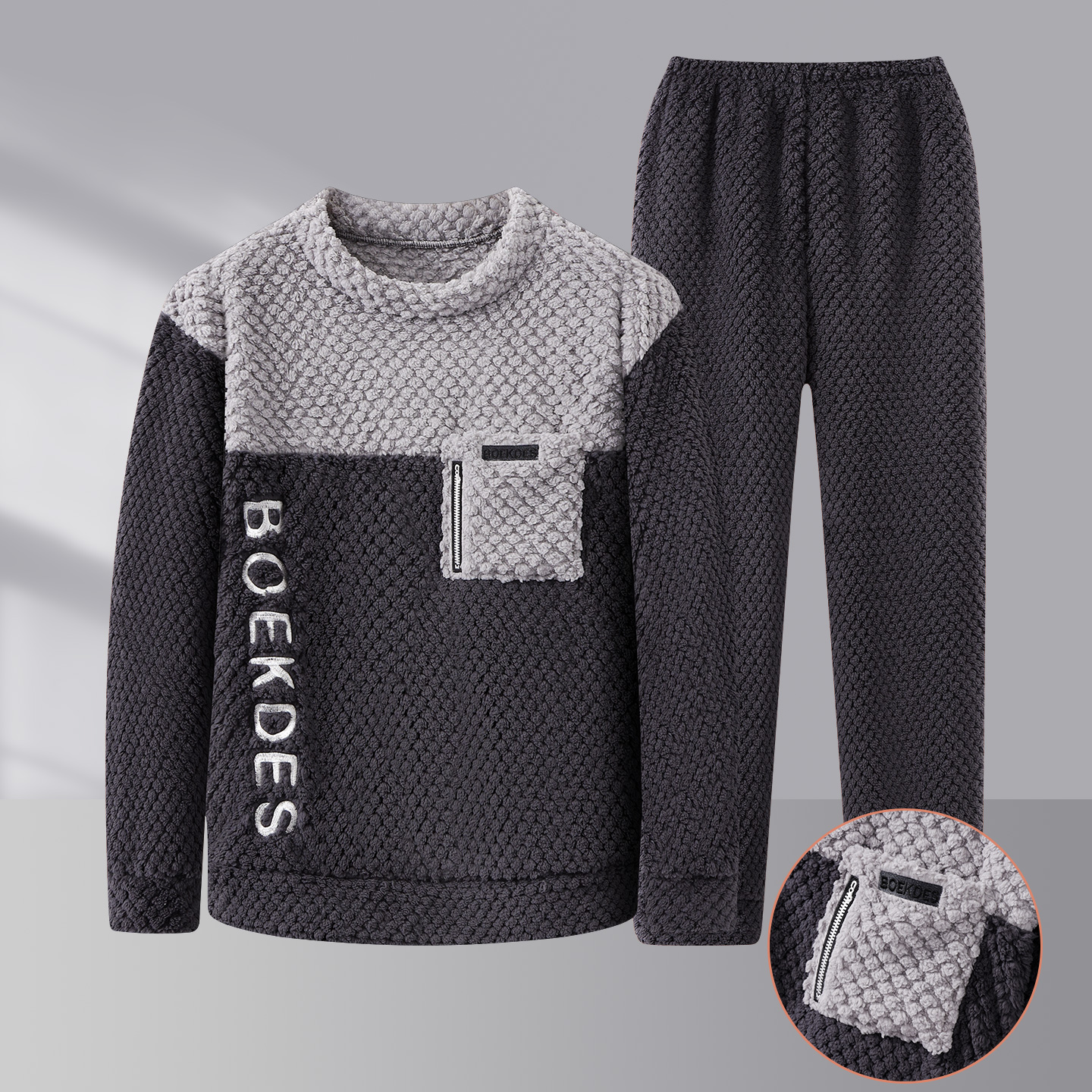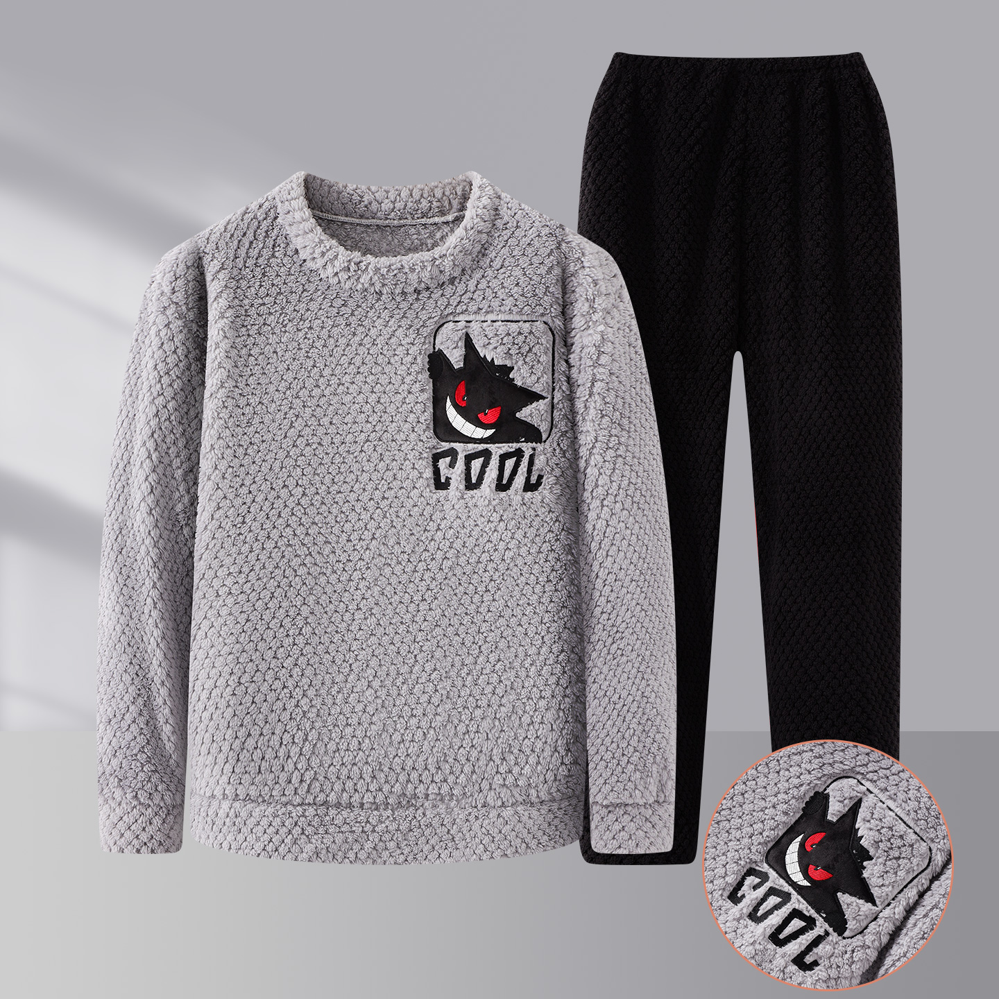 珊瑚绒睡衣男秋冬加绒加厚保暖男士法兰绒冬季家居服套装男款冬天