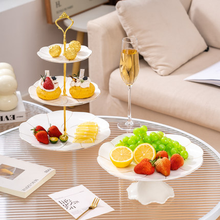 水果盘家用客厅茶几陶瓷盘甜品零食盘高档糕点多层盘糖果盘收纳盆