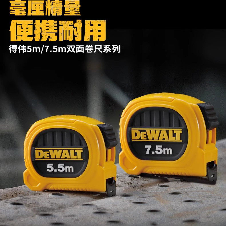 DEWALT得伟双面卷尺5米尺子耐磨高精度测量盒尺木工钢卷尺