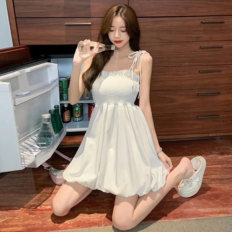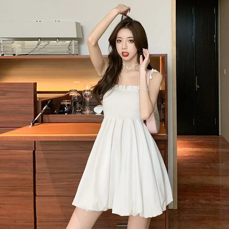 纯欲风夏季花苞裙吊带抹胸连衣裙