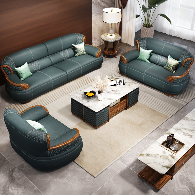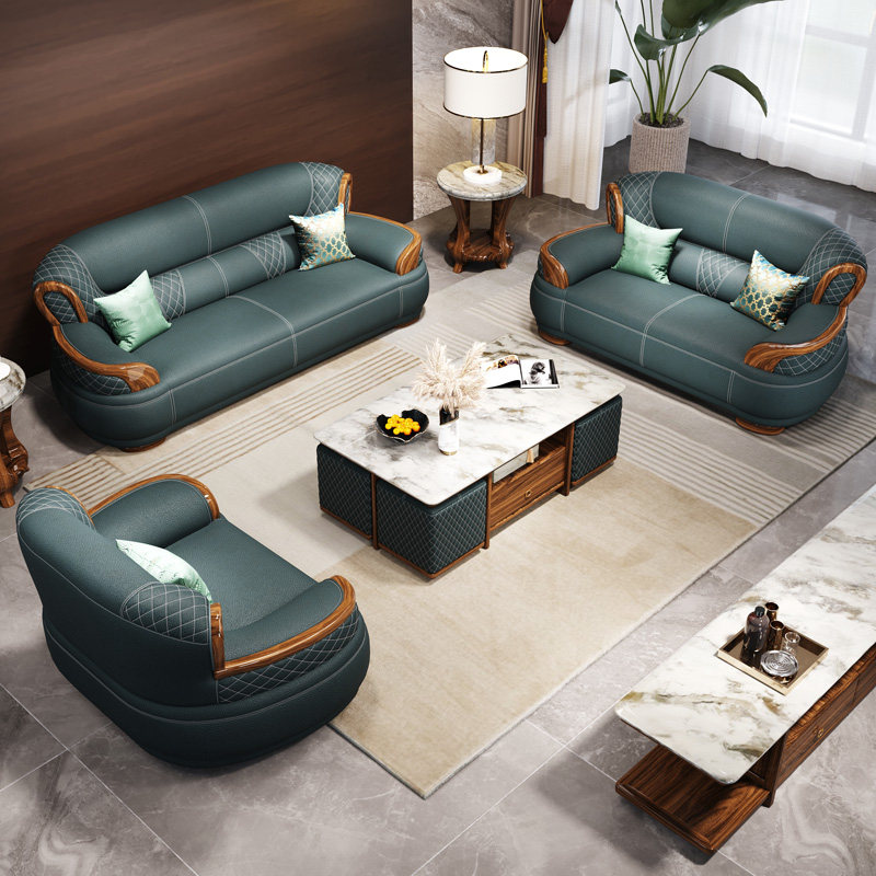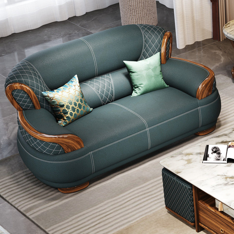 乌金木真皮沙发中式客厅家具