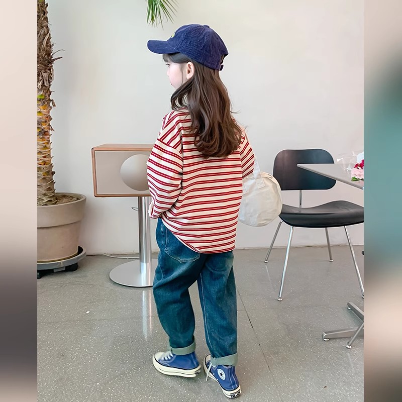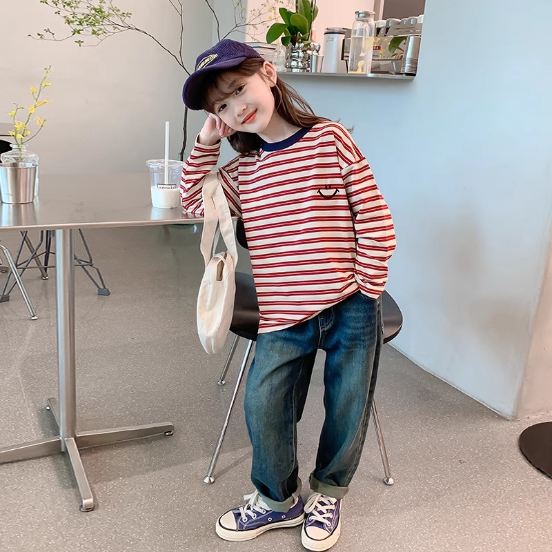 女童长袖T恤春秋款2025新款儿童秋季条纹上衣中大童秋装打底衫薄