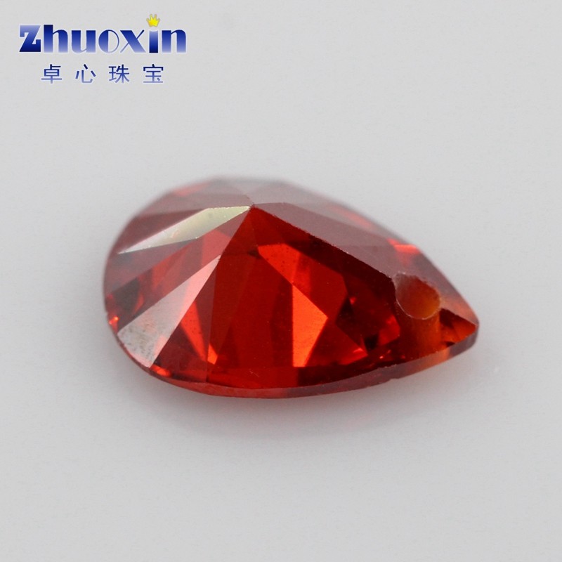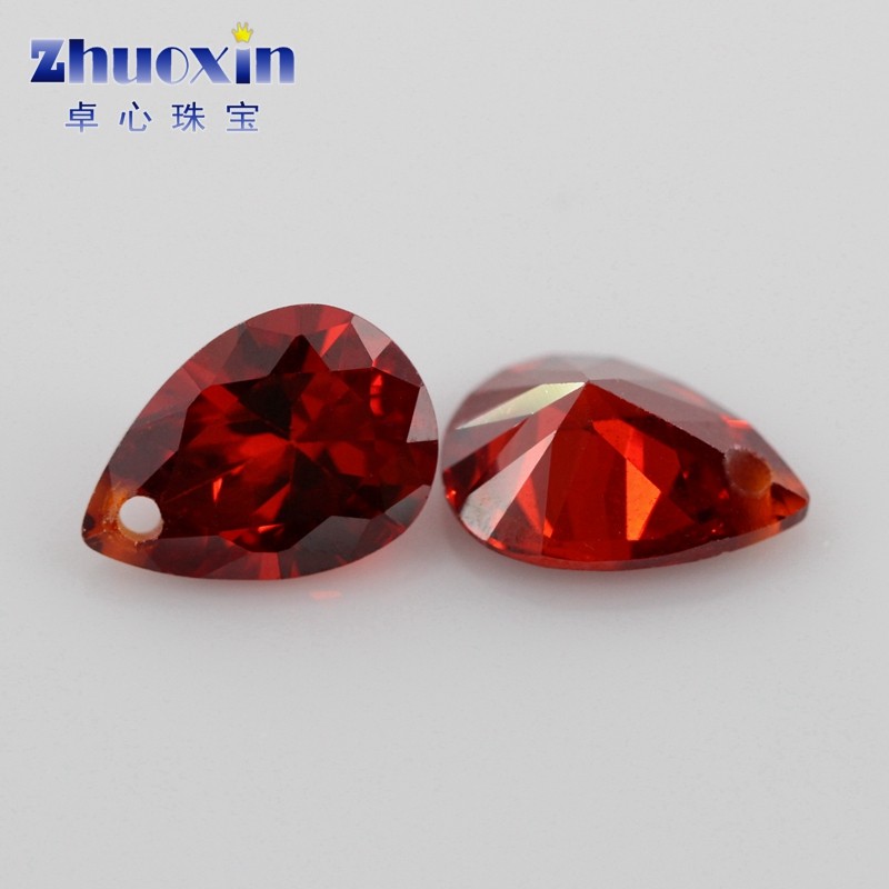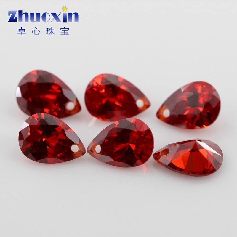 梨形石榴红锆石单孔打孔水滴形裸石 大红色宝石吊坠首饰珠宝主石