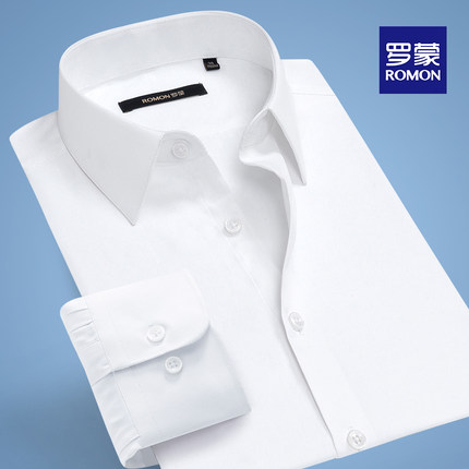罗蒙衬衫男士长袖商务休闲职业免烫抗皱秋季上班白色衬衣秋装