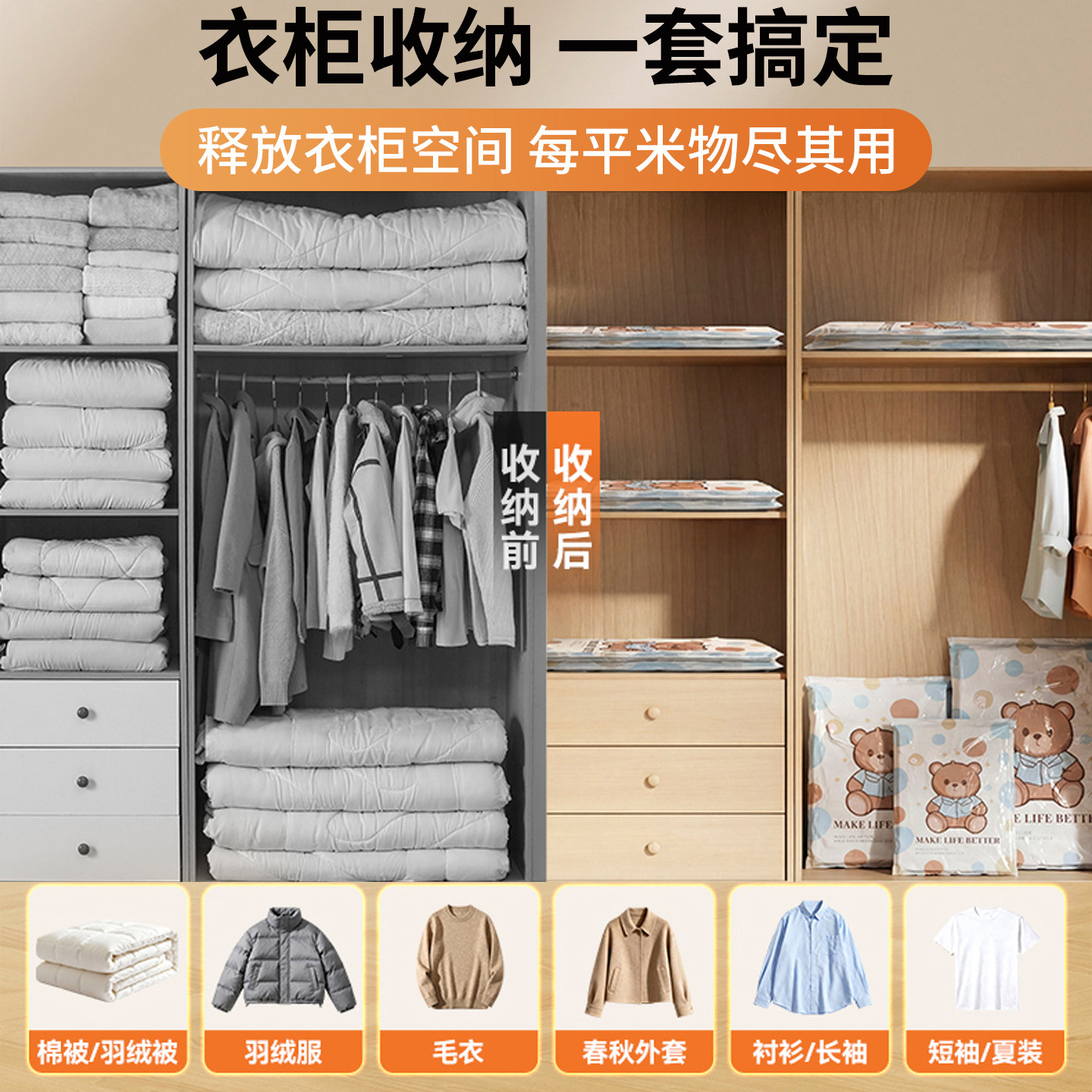 家用抽真空压缩袋收纳衣服被子
