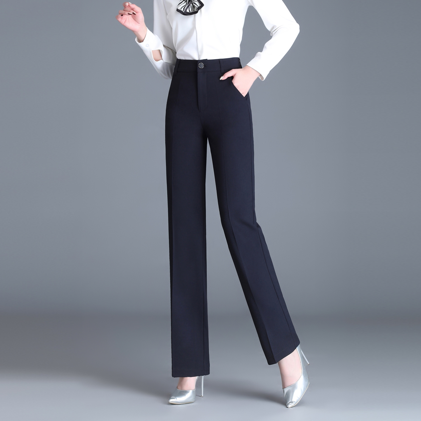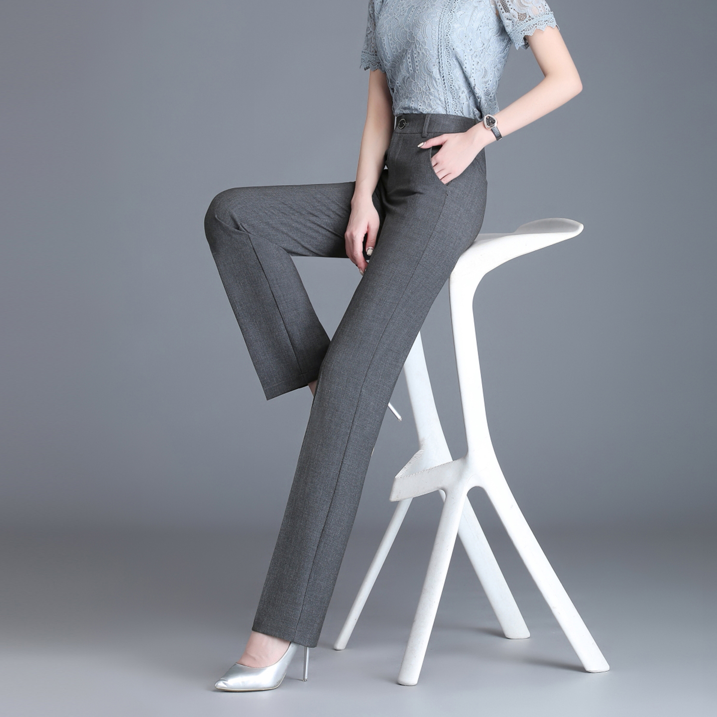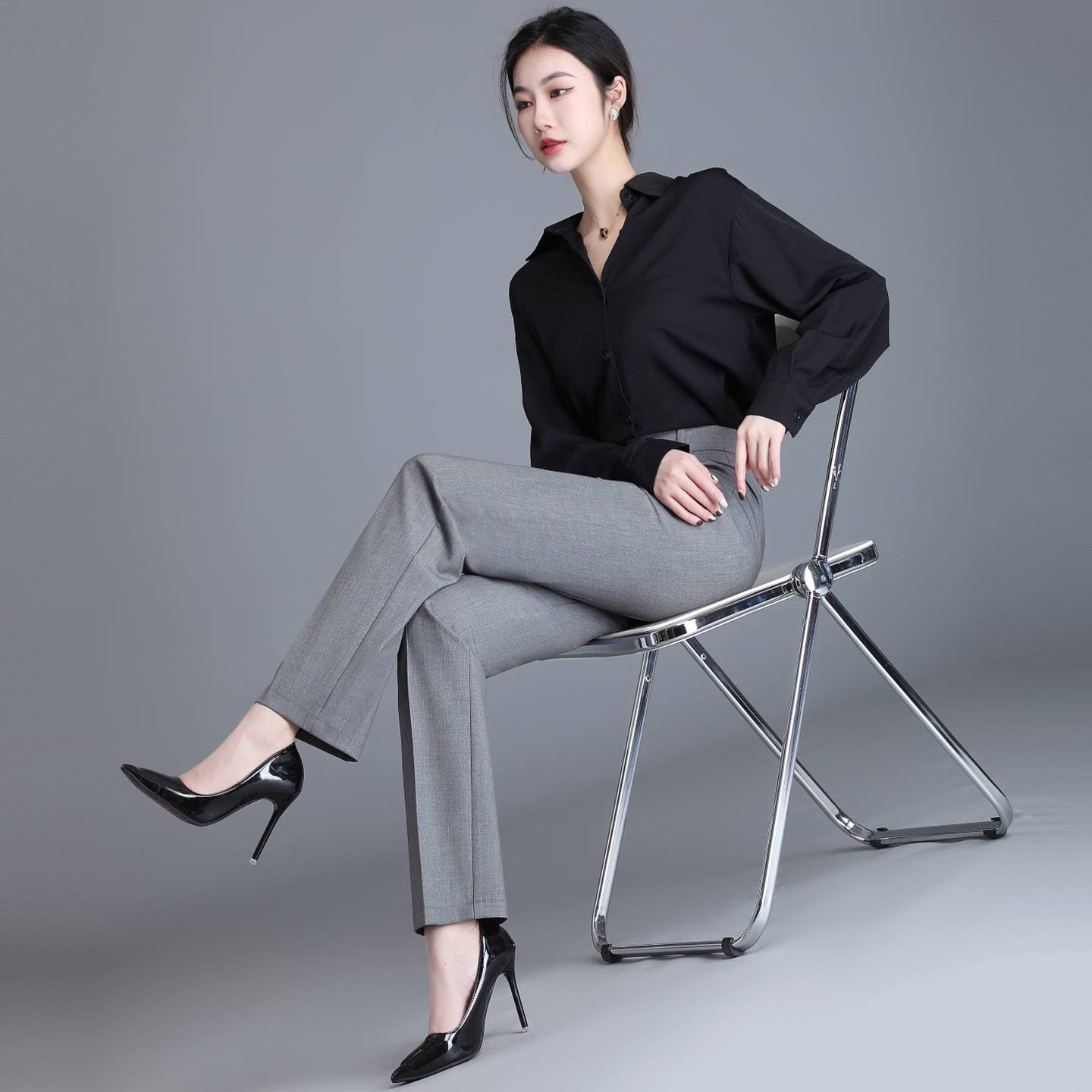 垂顺高级灰色女士西裤秋季高腰直筒裤子西服裤休闲职业女裤小脚裤