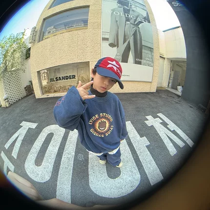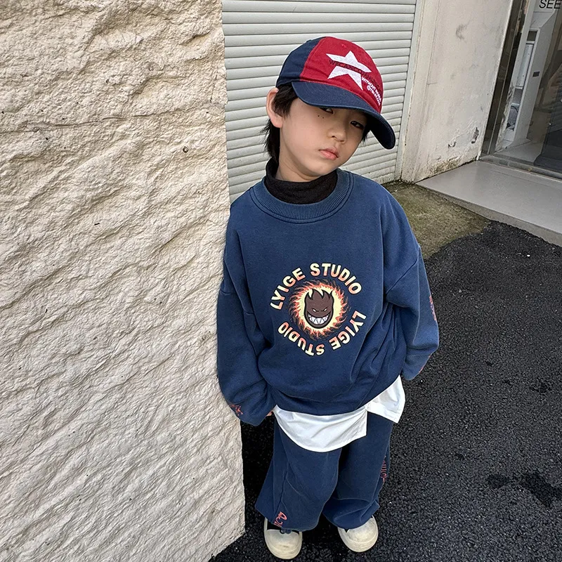 儿童帅气一体绒炒色运动套装秋冬韩版男童宽松休闲卫衣卫裤两件套
