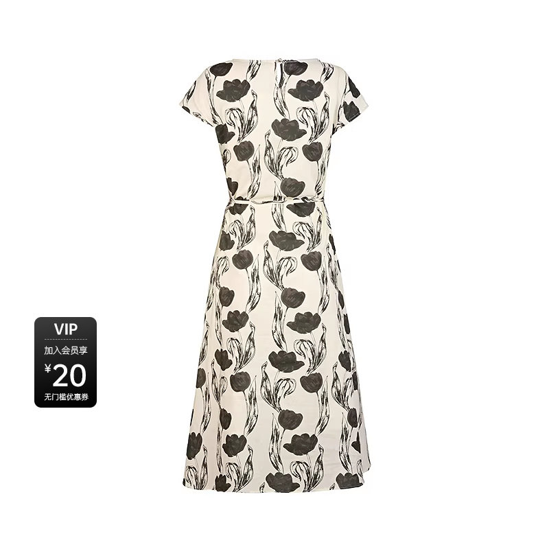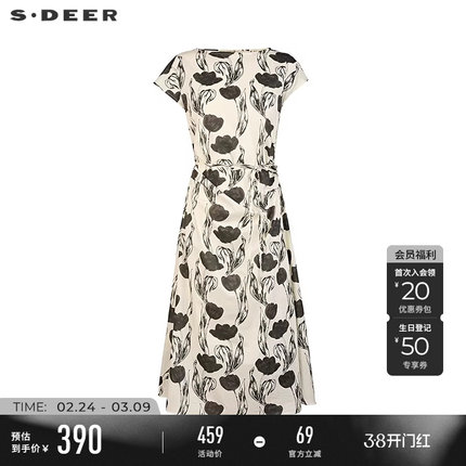 sdeer圣迪奥女装夏装圆领印花撞色收腰两件套连衣裙S252Z12C7