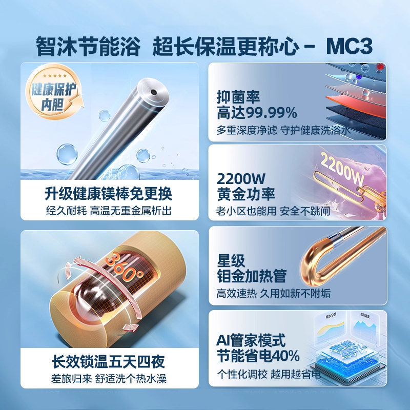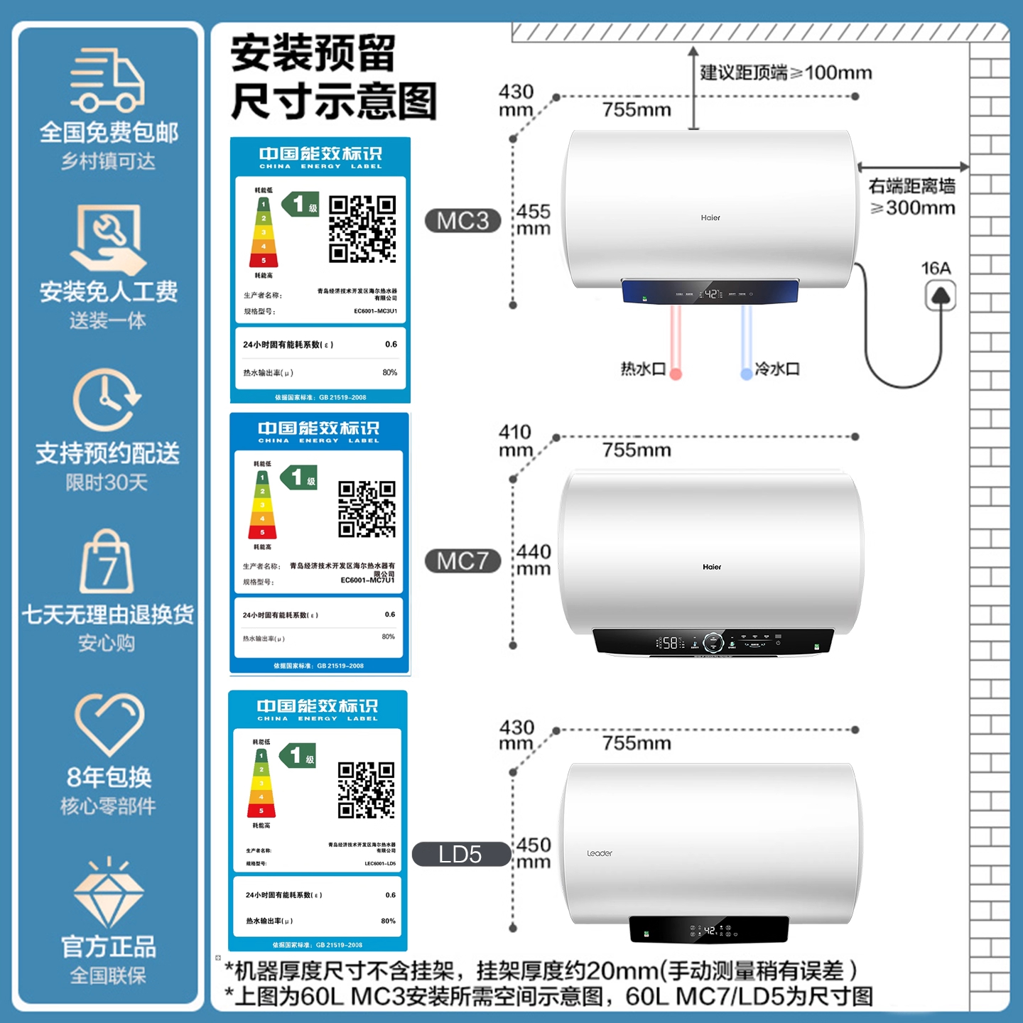 海尔电热水器50/60/80升家用租房卫生间洗澡节能一级能效储水速热