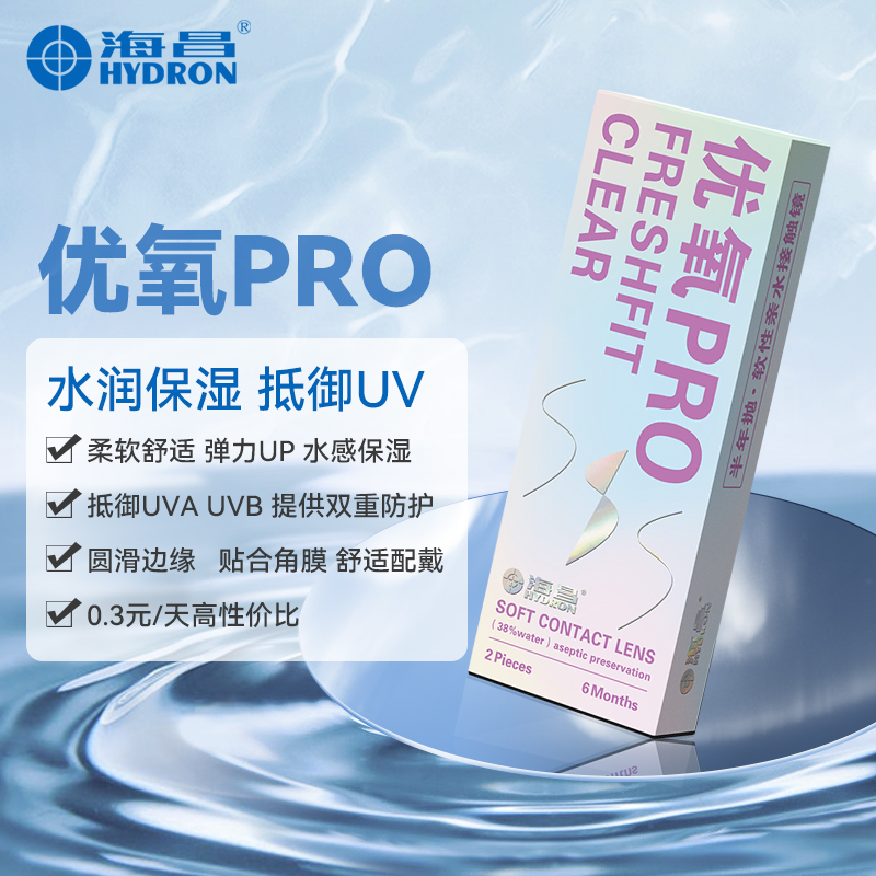 送护理液】海昌隐形近视眼镜优氧PRO半年抛2片官方正品非美瞳月抛